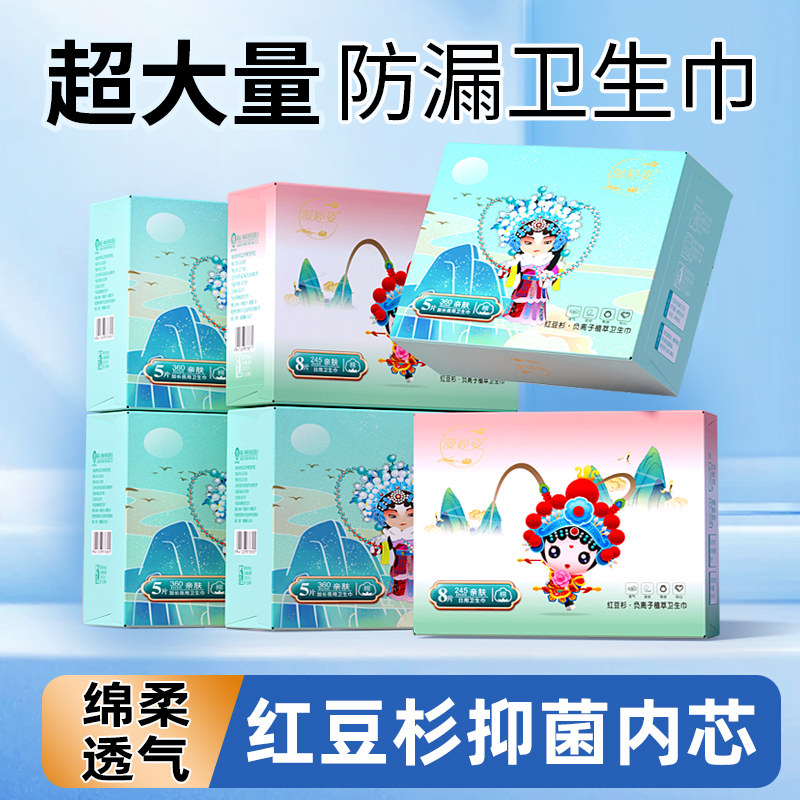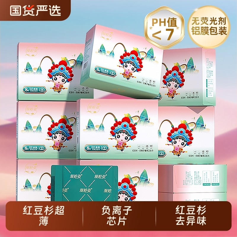 漫婷姿红豆杉卫生巾正品加长透气姨妈巾组合负离子日用标准夜用