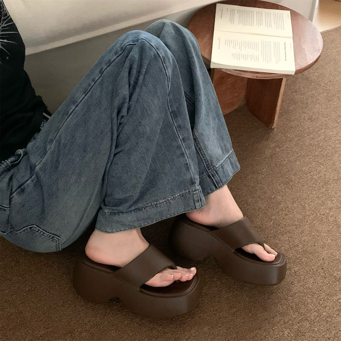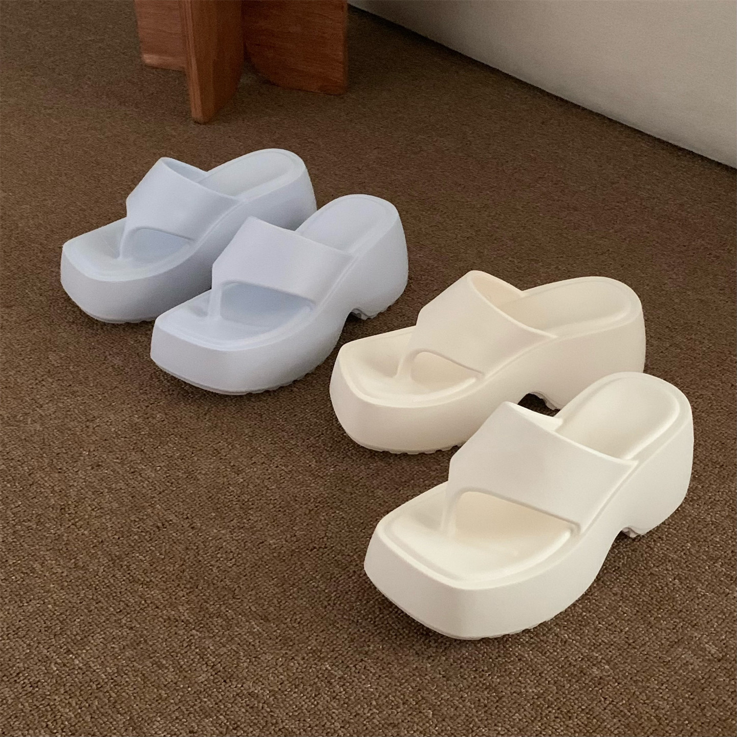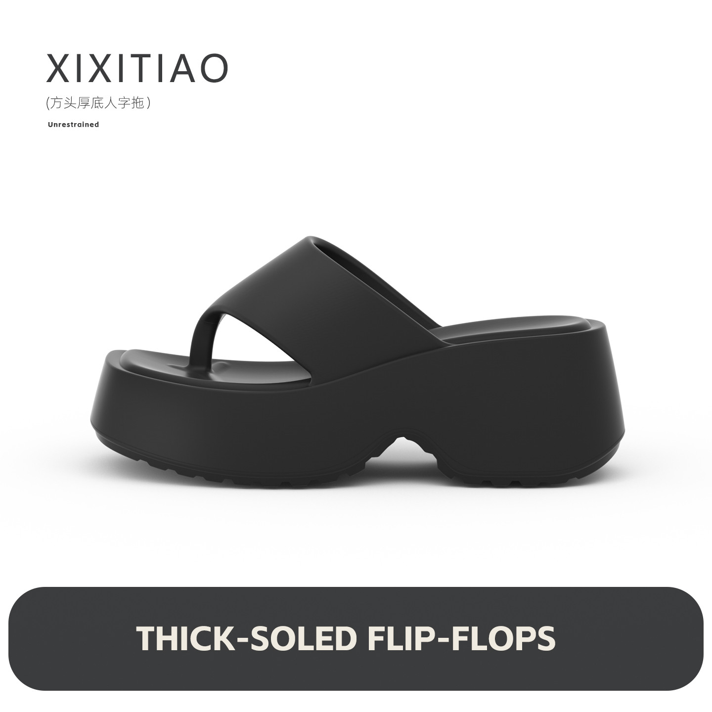 细细条 时尚防滑户外海边厚底沙滩夹脚凉拖方头增高8cm人字拖女夏