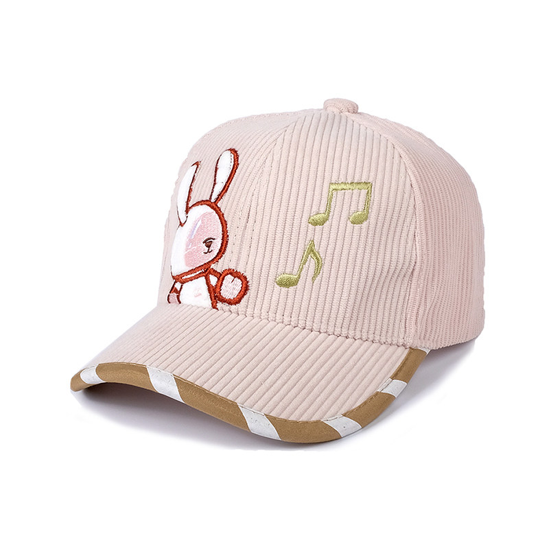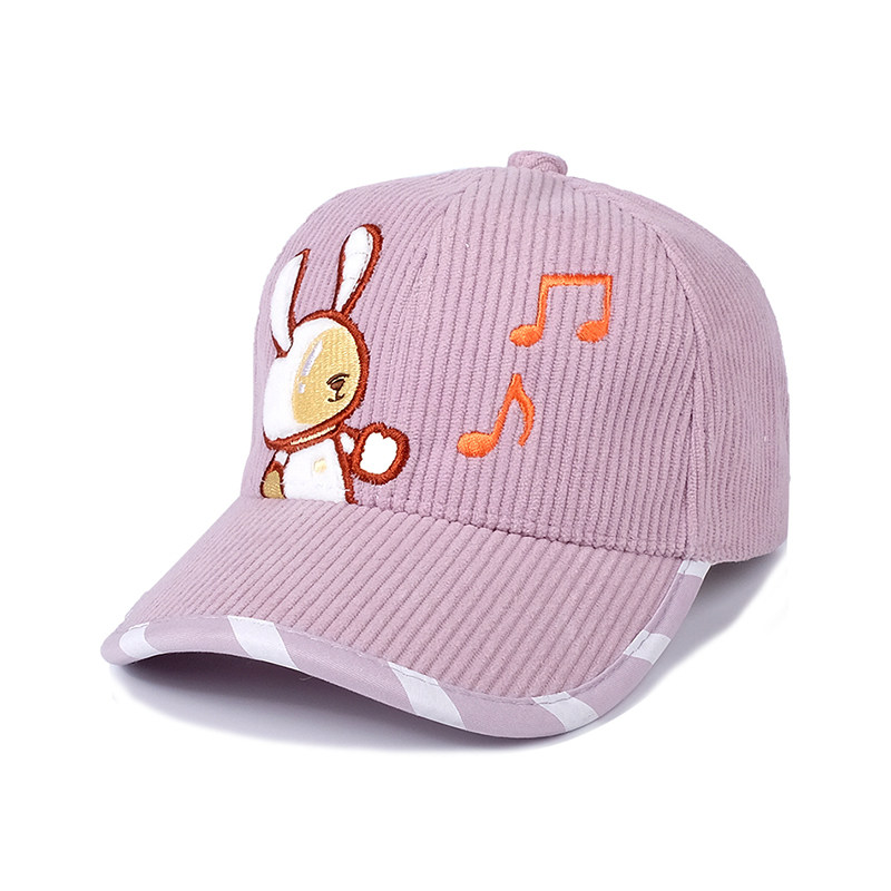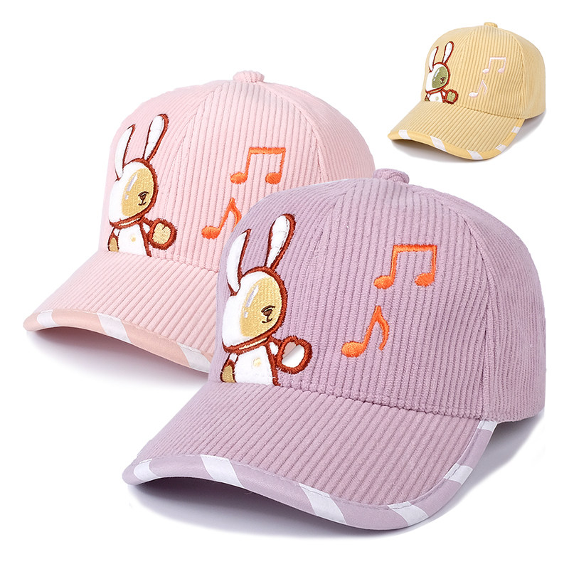 儿童棒球帽女宝宝遮阳帽秋冬防寒卡通兔子条绒公主帽可爱鸭舌童帽