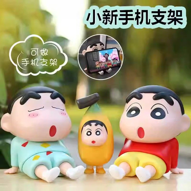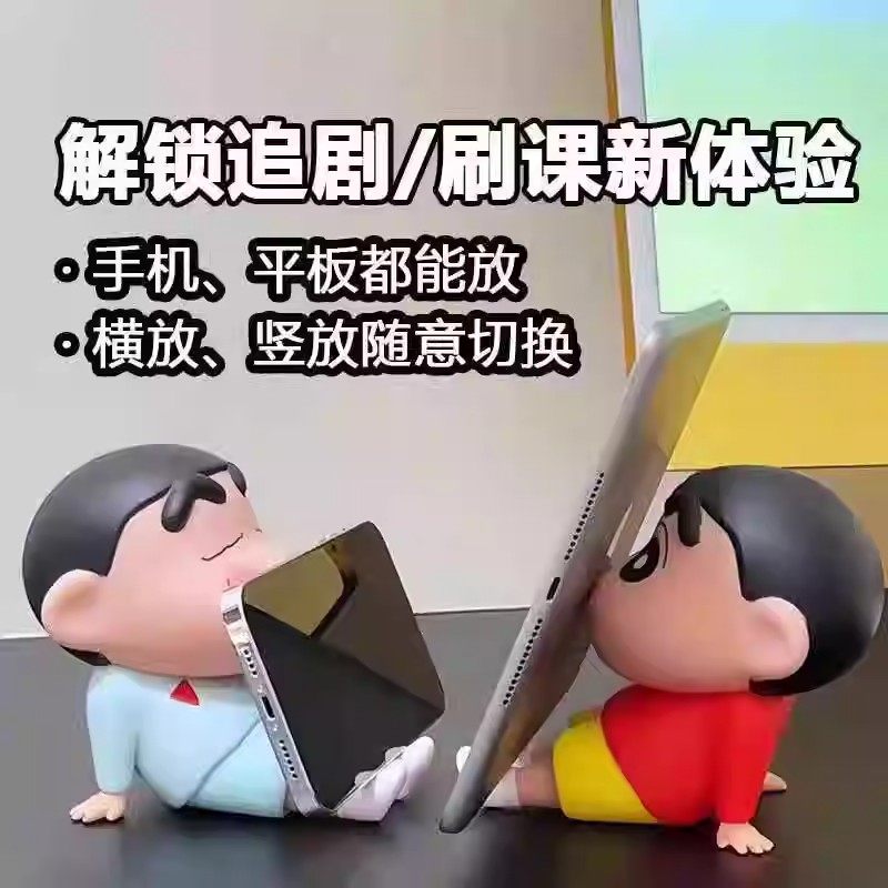 文凌手机支架蜡笔小新可爱桌面摆件手办模型公仔潮玩草莓熊送朋友的礼物好玩个性创意懒人手机支架座