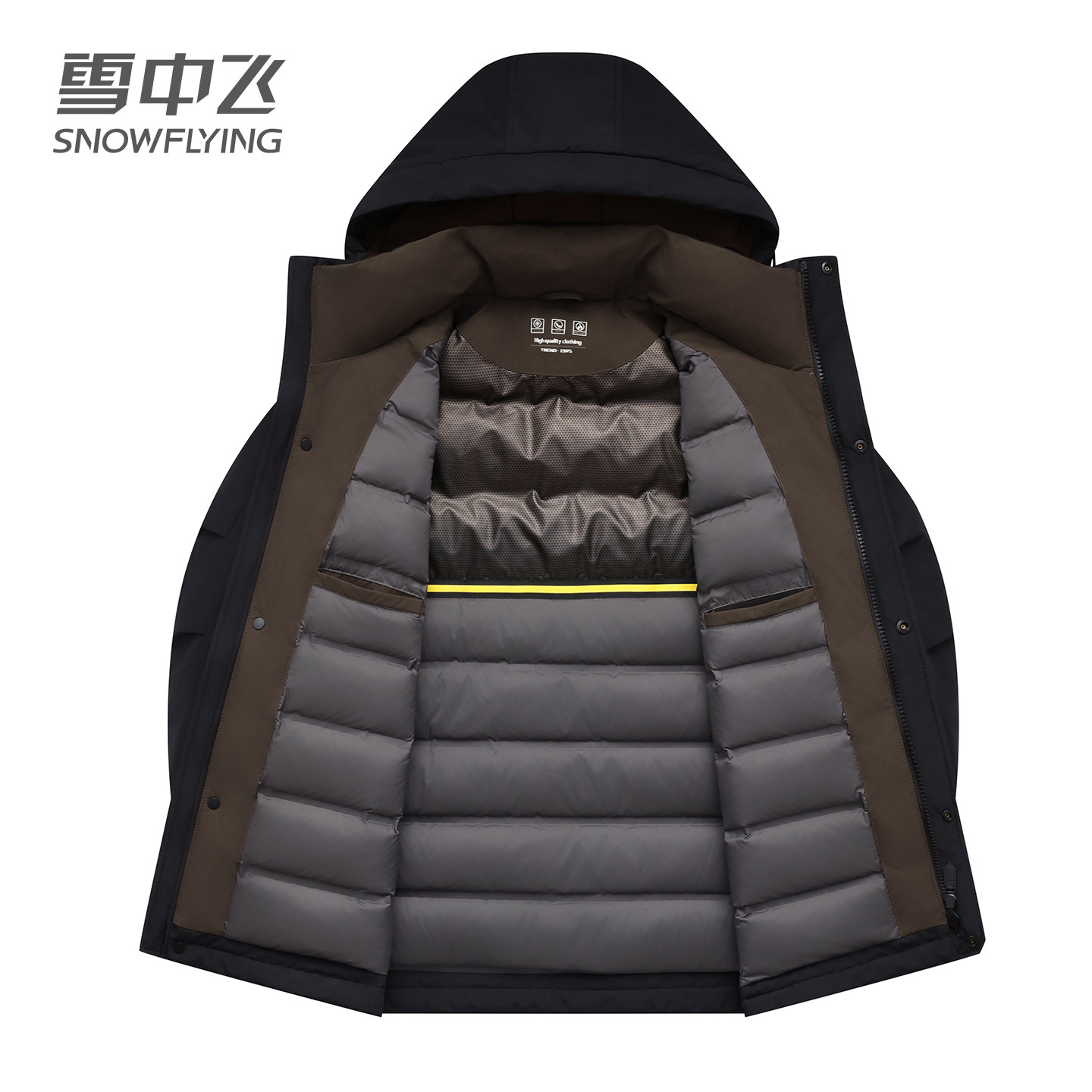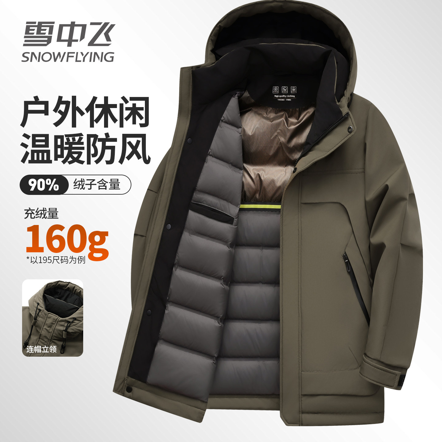 雪中飞工装羽绒服男2025冬季新款压胶鸭绒保暖石墨烯防风连帽外套