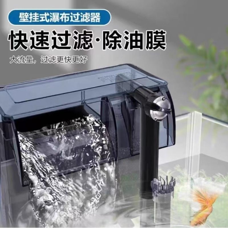 鱼缸过滤制氧一体机静音净水循环三合一水泵小型壁挂式瀑布过滤器