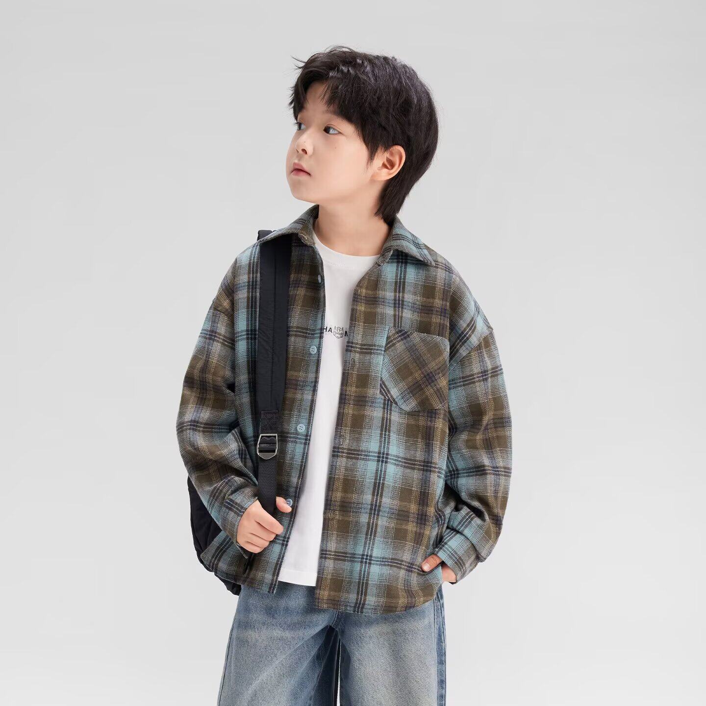 童装男童格子衬衫加绒儿童保暖内搭2026新款男孩秋冬加厚休闲外套