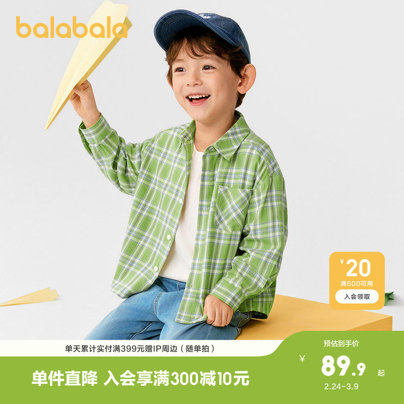 巴拉巴拉童装儿童衬衫2025新款女童男童上衣格纹衬衣春装亲子百搭