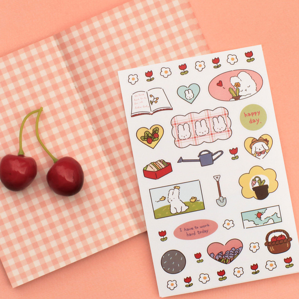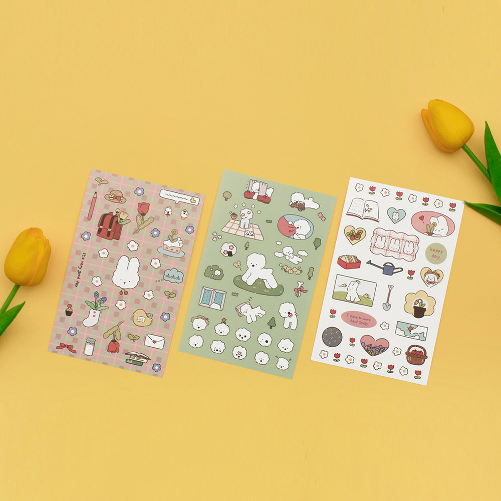 韩国Be on D卡通卷毛狗可爱兔兔装饰贴纸手账文具拼贴画deco素材
