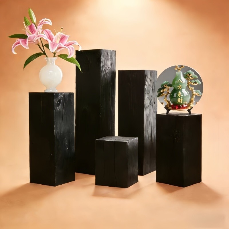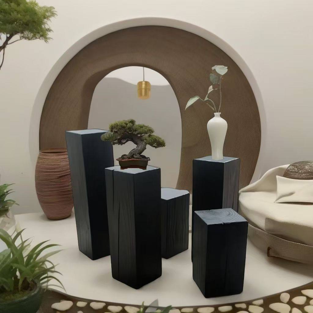 侘寂风方形木墩子木桩碳化树桩茶几家用花架实木底座坐凳木桩摆件