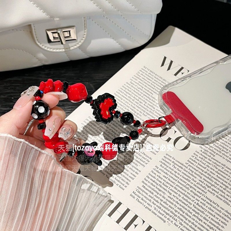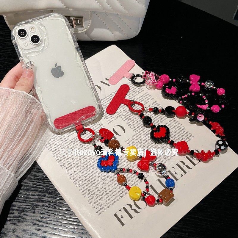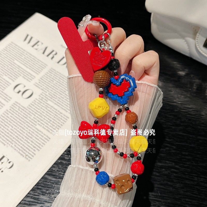 积木爱心手机链挂件芭比玫红色手腕挂链彩色辣妹新款手工串珠手链腕带个性创意链条高档网红女固定卡片夹片壳