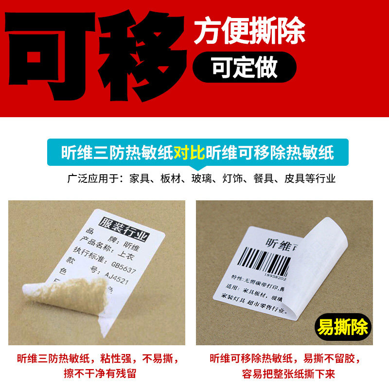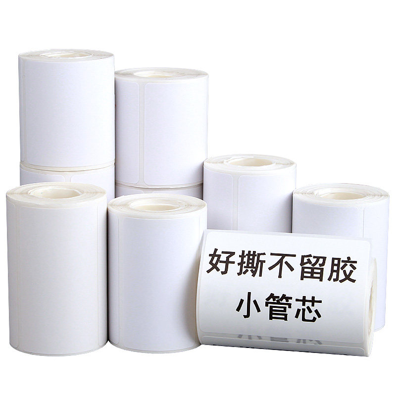 小卷芯可移除热敏标签纸60*40 30 70 50便携条码打印机撕不烂不留胶合成纸不干胶家具易撕取三防水小管心贴纸