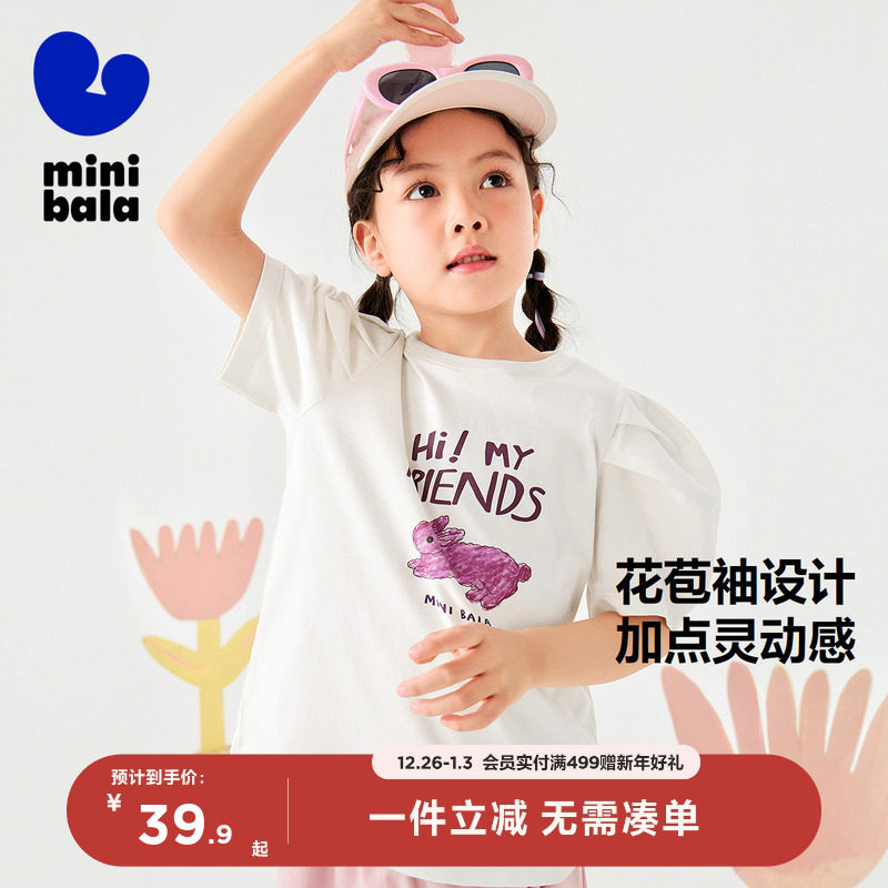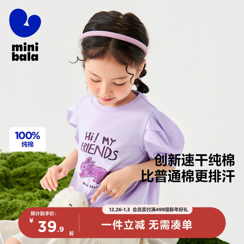 【速干纯棉】迷你巴拉巴拉女童不闷汗柔软亲肤不易变形短袖T恤