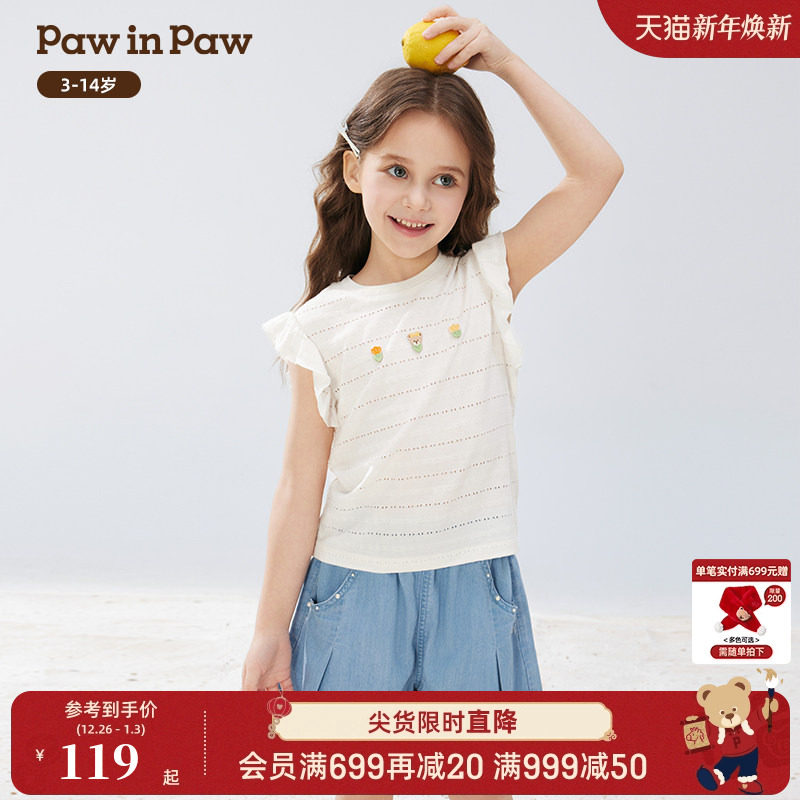 PawinPaw卡通小熊童装25年春夏新款女童圆领宽松百搭短袖T恤