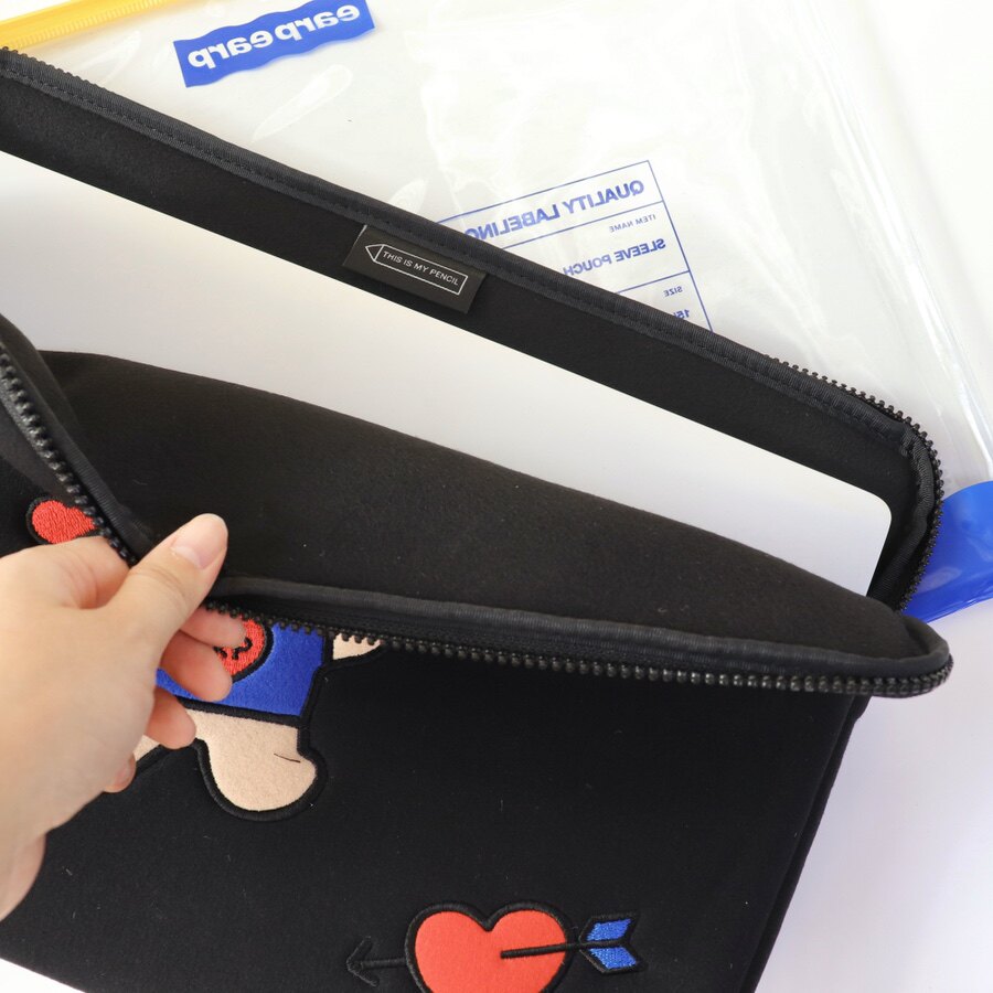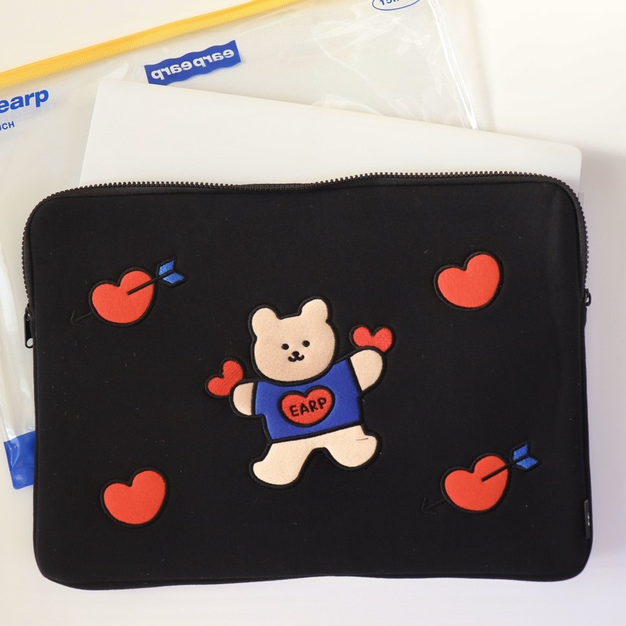 韩国进口earpearp可爱小熊手拿防震IPAD包15.4"笔记本电脑包女黑色ins适用苹果macbook pro联想华为戴尔通用
