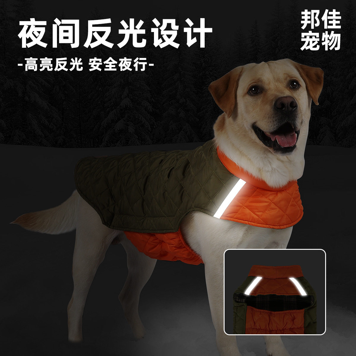 新款狗狗衣服格子棉衣可牵引宠物衣服带反光保暖秋冬宠物衣服现货