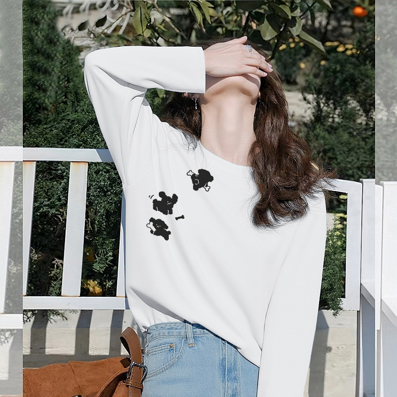 三福长袖上衣女2025新款秋冬季圆领内搭打底衫修身白色t恤女装