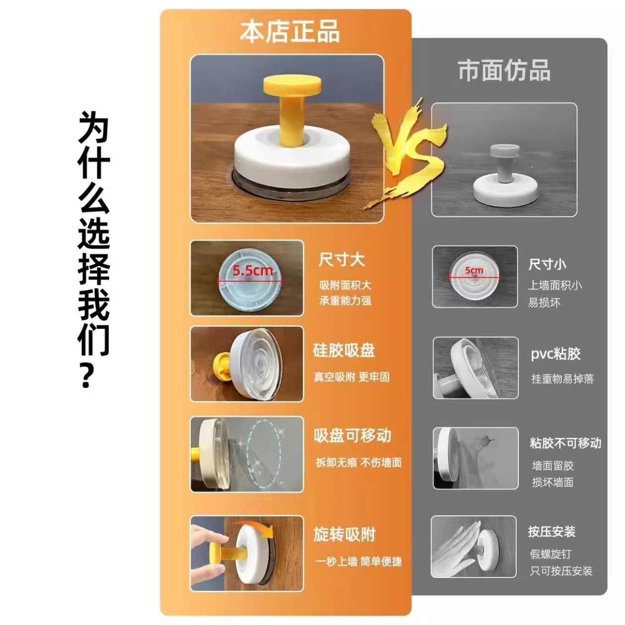 吸盘挂钩真空强力无痕收纳免打孔粘钩家用浴室厨房门后卫生间吊钩