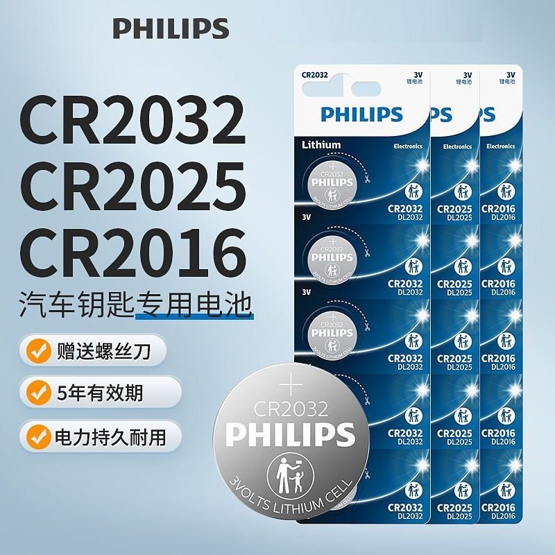 飞利浦cr2032车钥匙电池纽扣3V大众2025马自达哈弗汽车遥控器别克日产福特荣威宝马奇瑞本田吉利现代原装2450