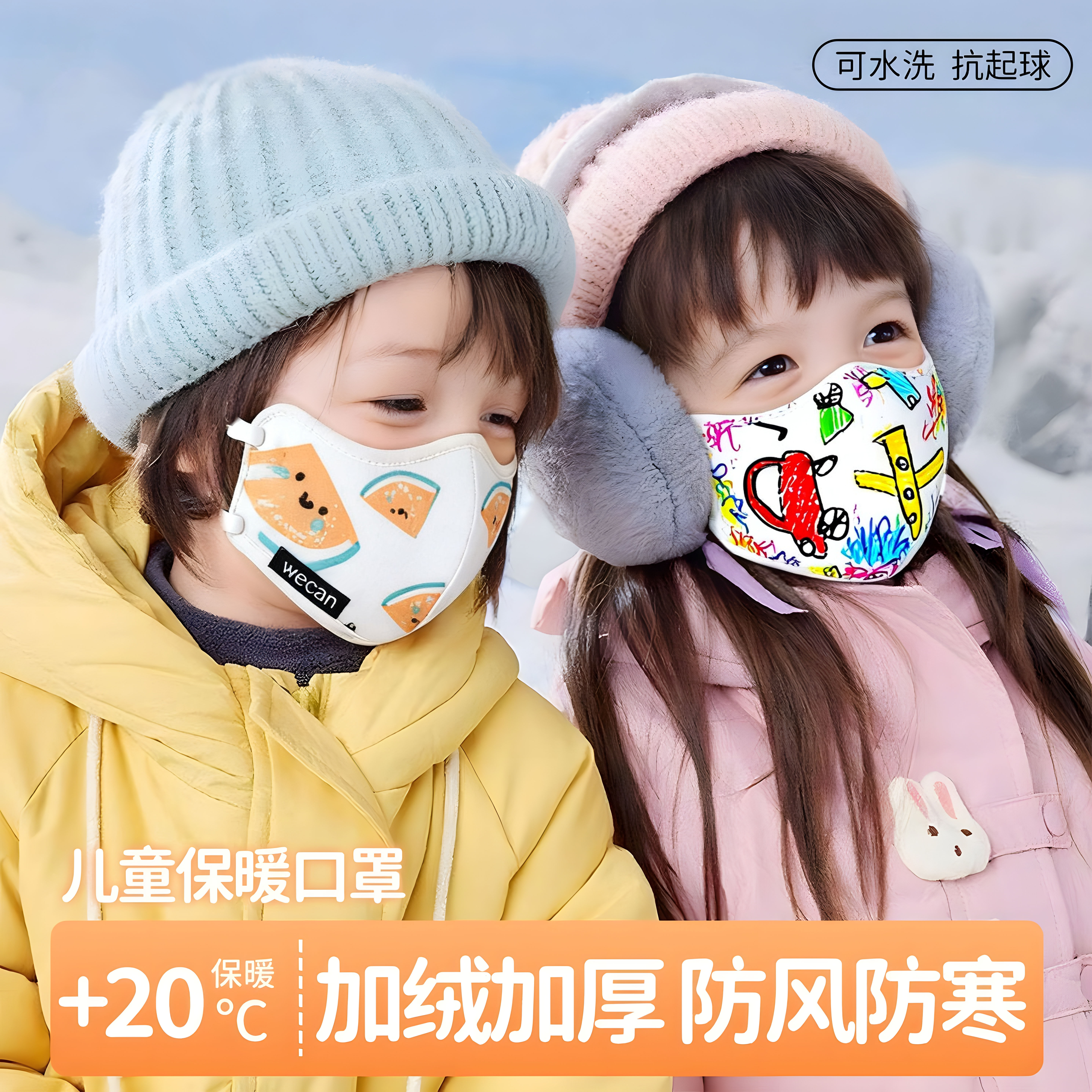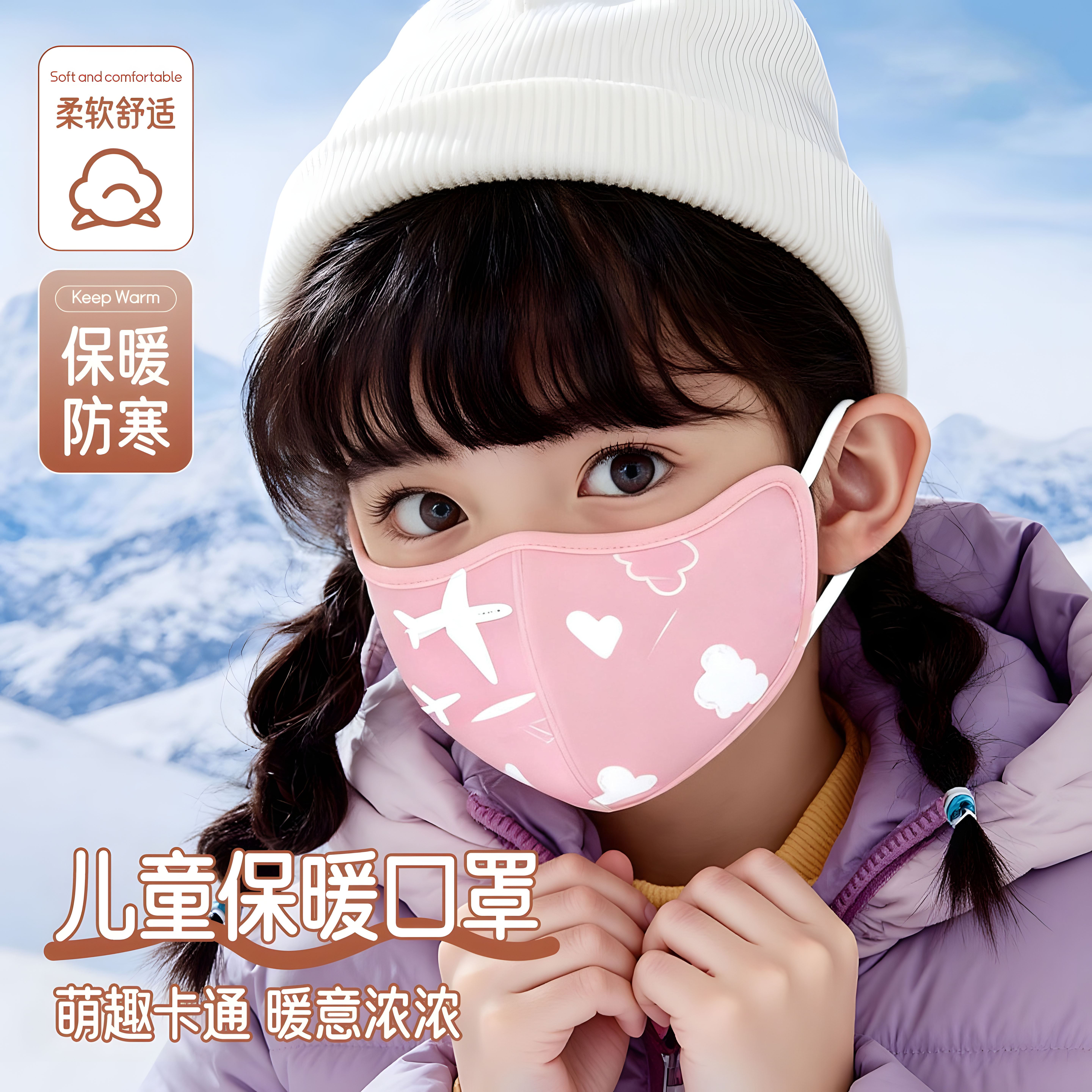 维康儿童保暖口罩防风御寒云朵印花3-12岁男童透气不闷热冬季859p