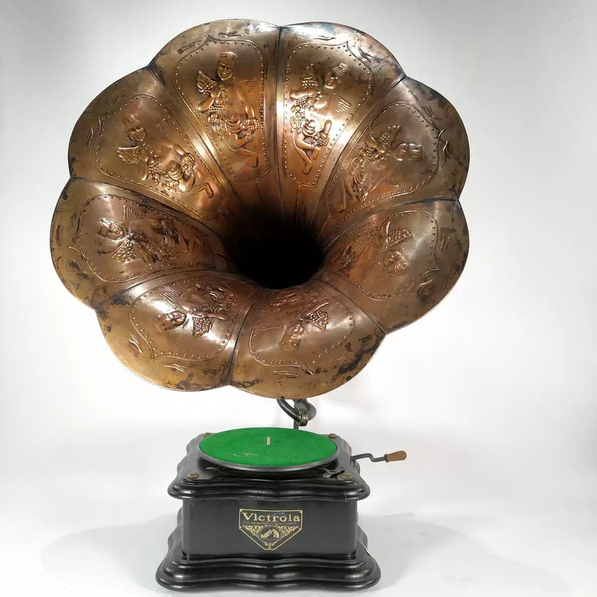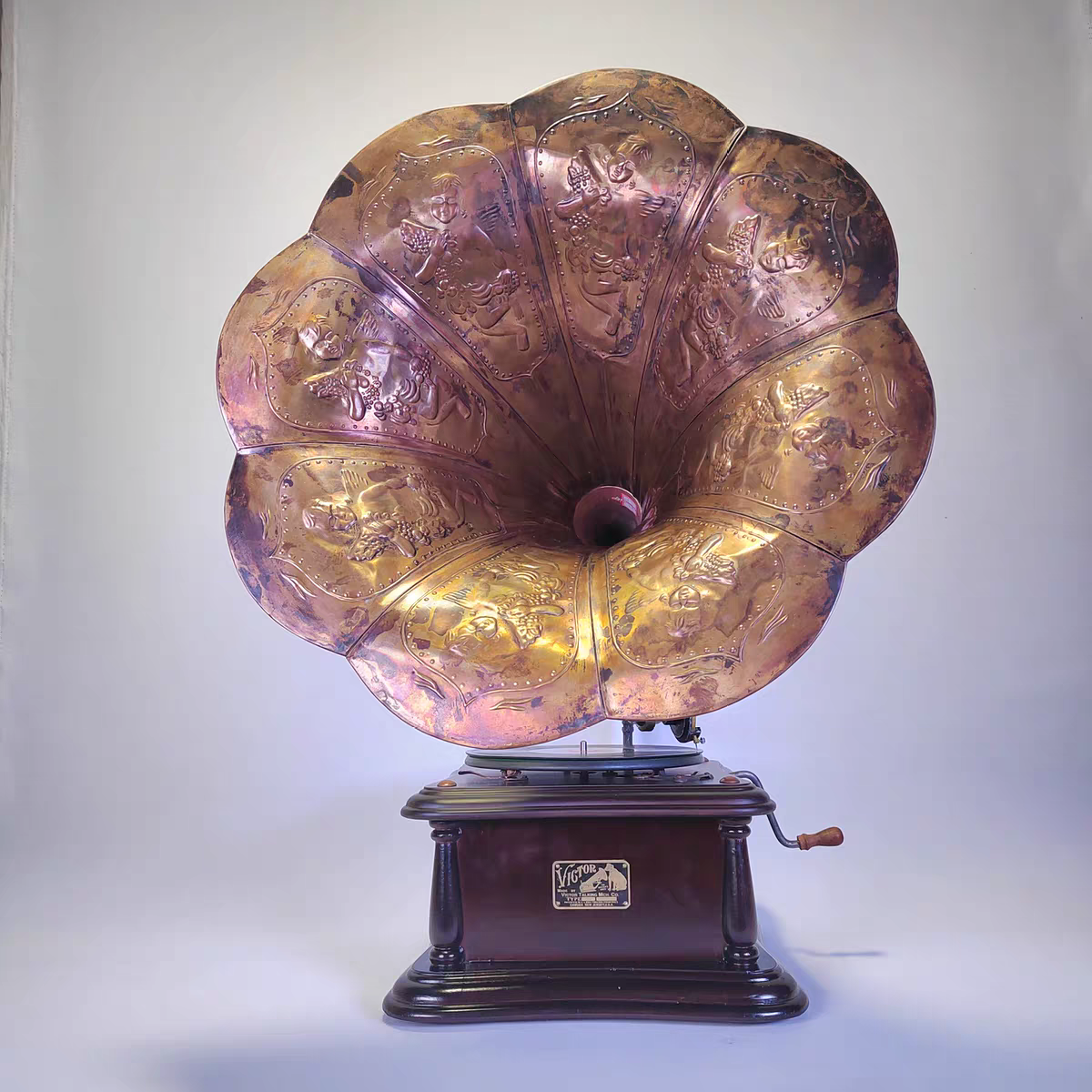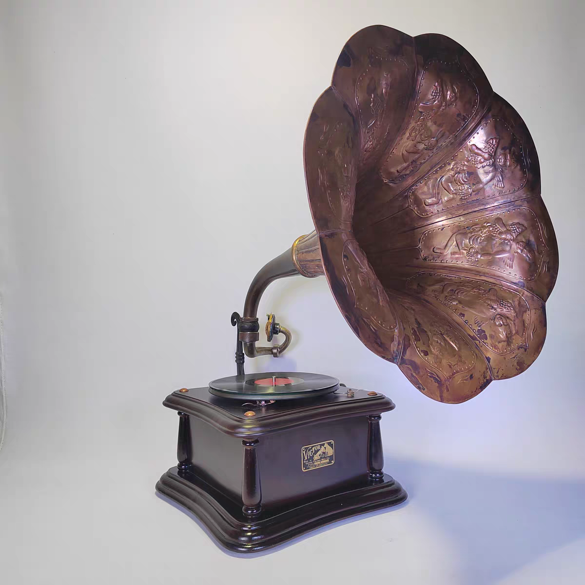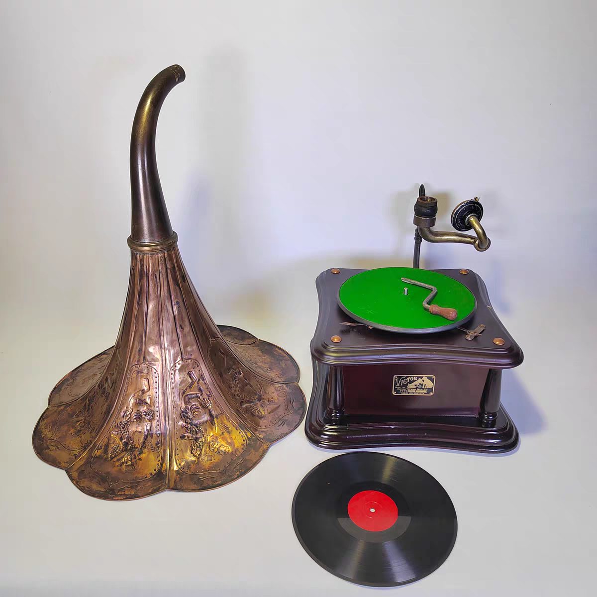 国产78转唱机 紫铜大喇叭留声机发条动力 复古造型可以使用送唱片