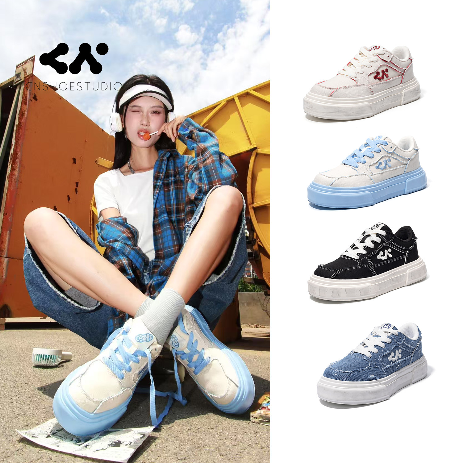 CN休闲板鞋女2025年新款低帮秋冬季透气帆布鞋增高百搭时尚厚底鞋