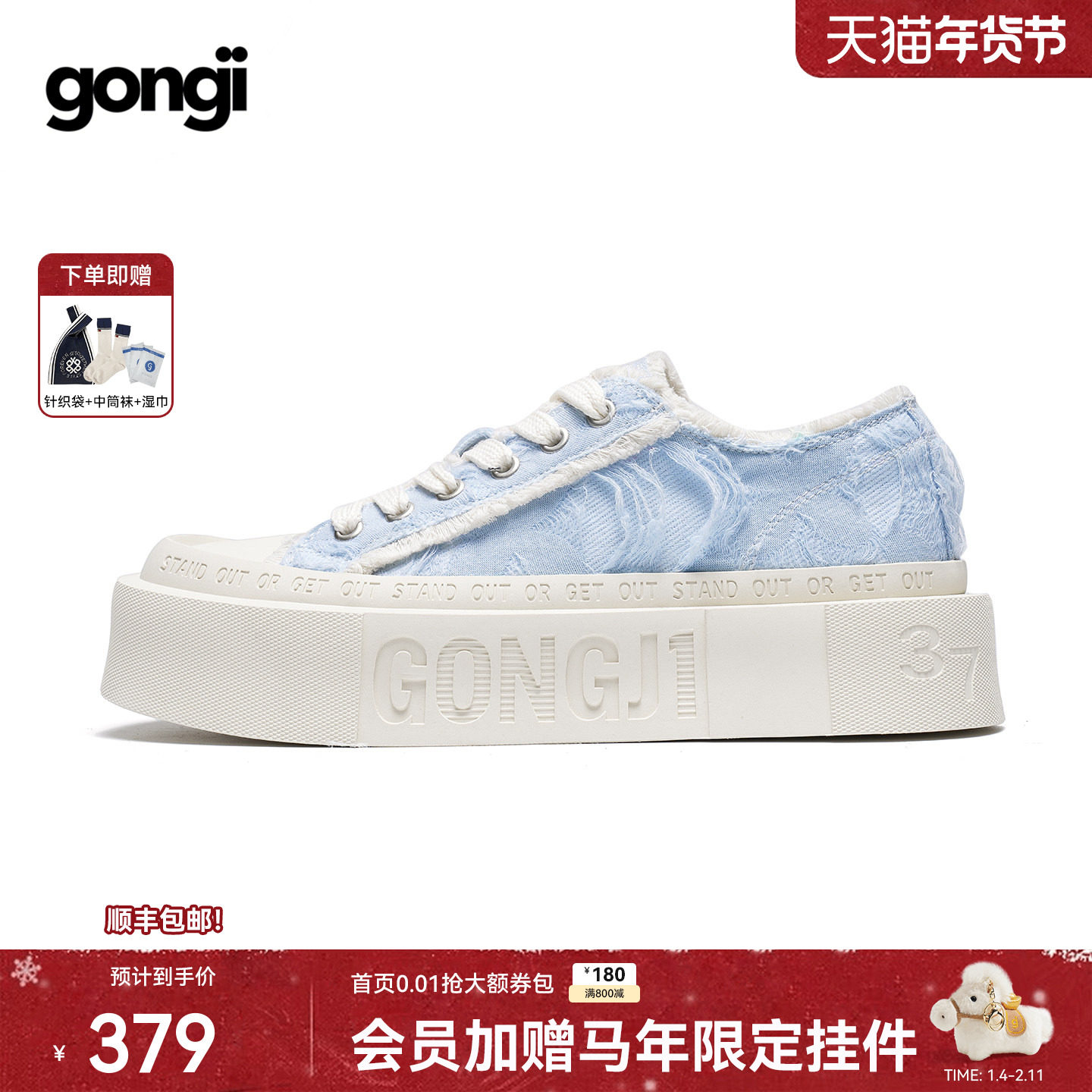 【刘些宁同款】GONGJI帆布鞋女厚底增高板鞋蓝色鞋子方头小白鞋