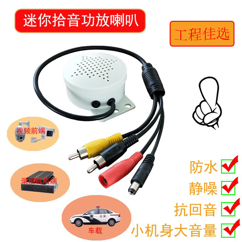 新款喊话对讲拾音扩音器报警语音有源防水外接监控摄像头喇叭