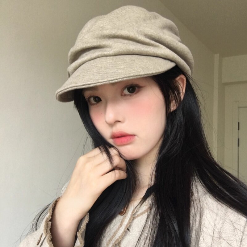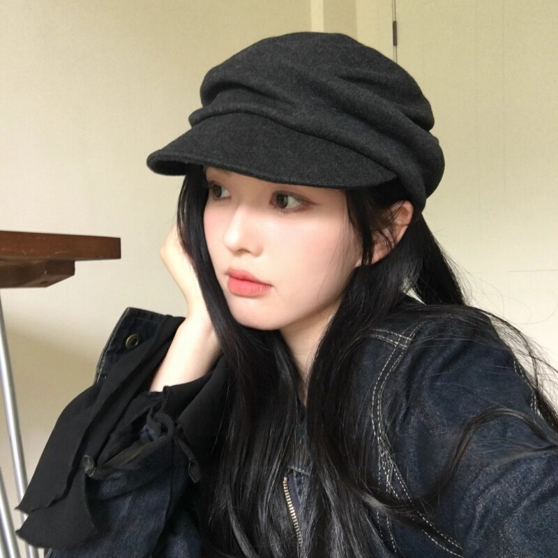 日系山本风黑色褶皱贝雷帽女秋冬显脸小报童帽大头围百搭画家帽子