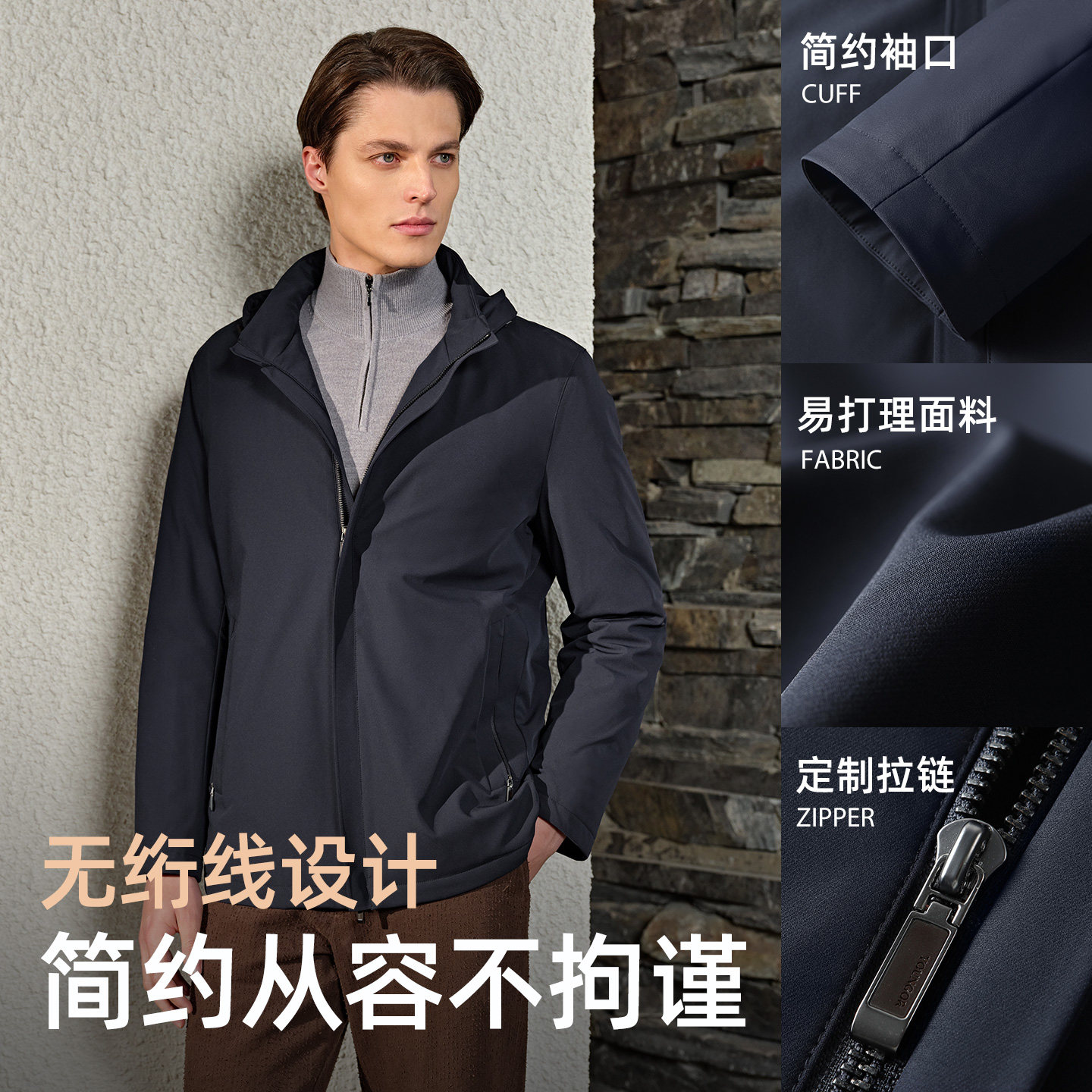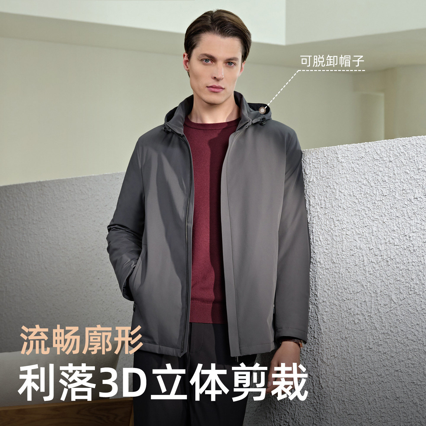 【轻暖鹅绒服】雅戈尔官方25秋冬新品保暖男士商务短款可脱帽外套