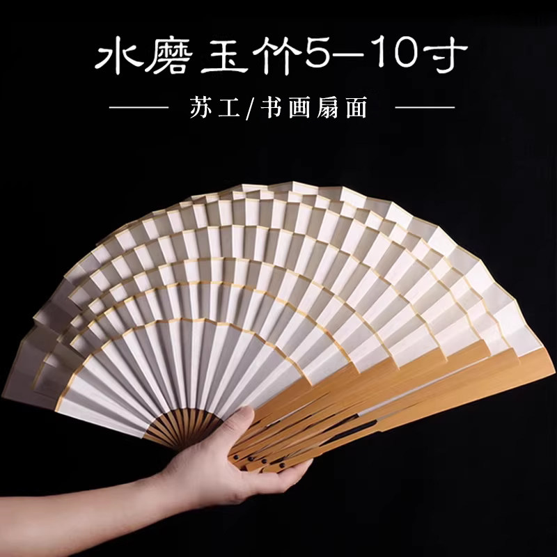 紫芳斋高档鸡翅木水磨玉竹宣纸空白折扇古风文玩书法绘画扇子9.5寸国画专用手绘创作苏工扇面中国风题字定制