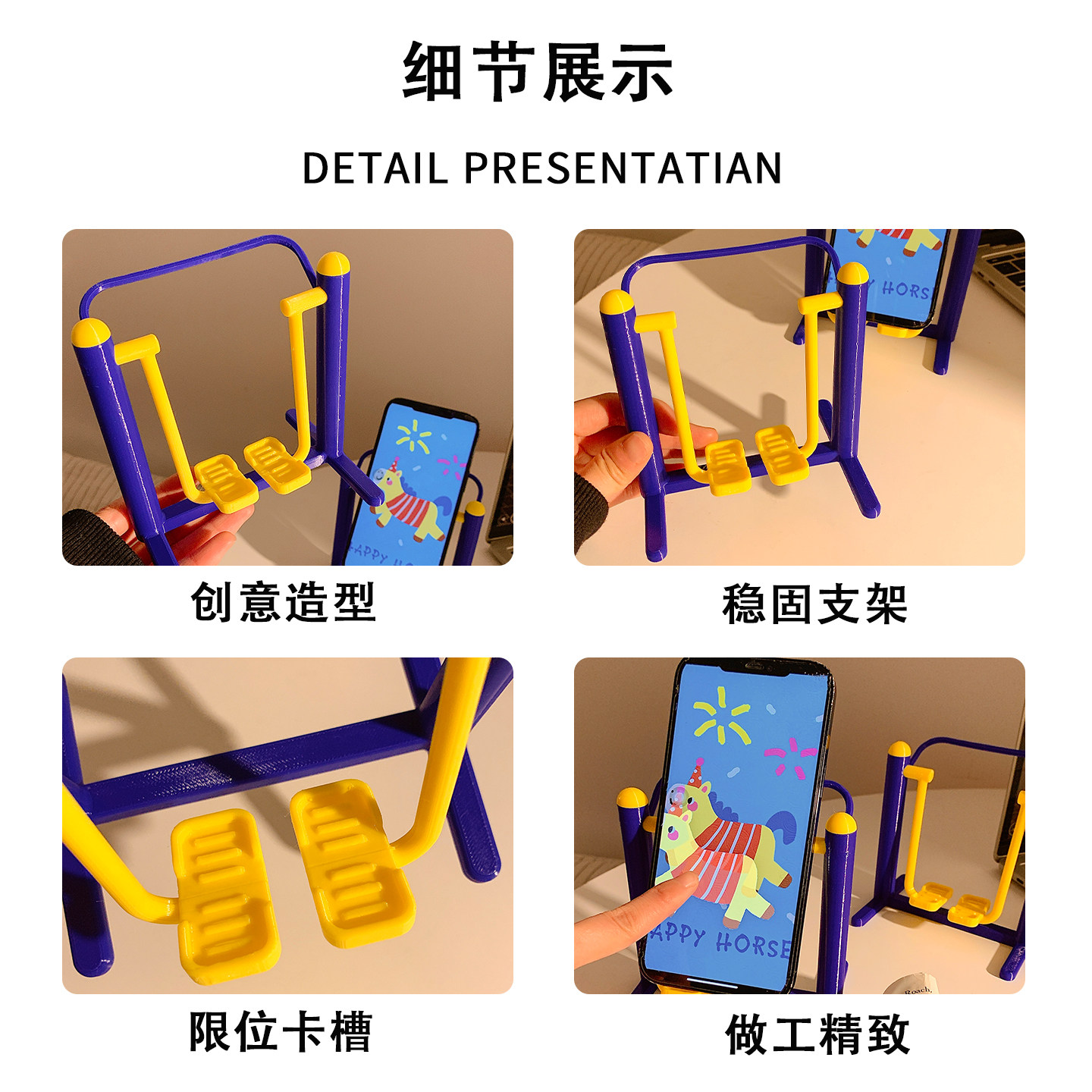 小椅子手机支架可爱创意桌面摆件金属铁艺懒人支架便携手机放置架