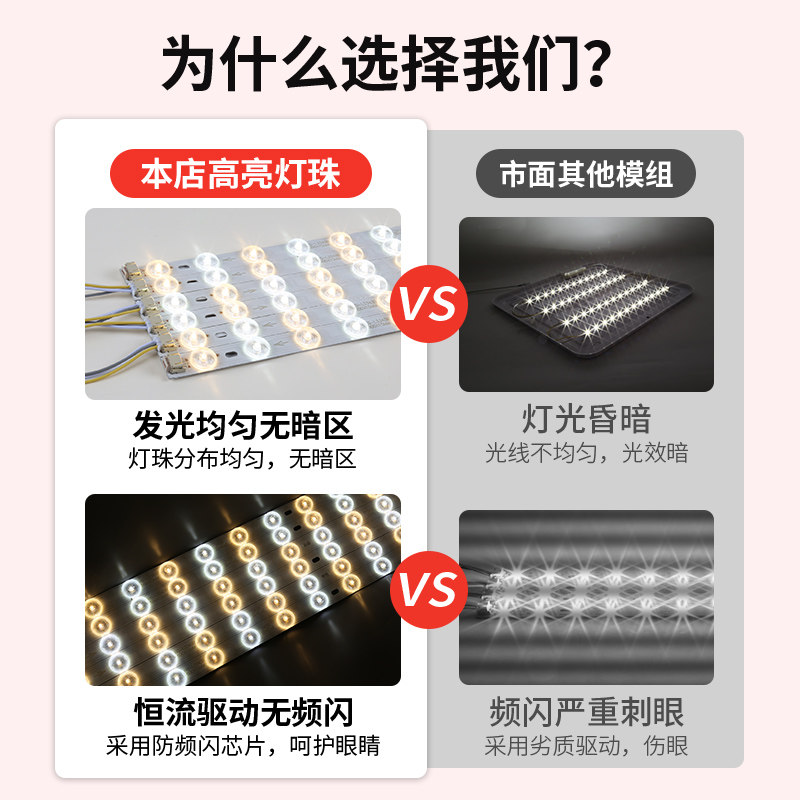 led替换灯芯吸顶灯光源家用灯盘卧室贴片灯芯改造圆形方形灯节能