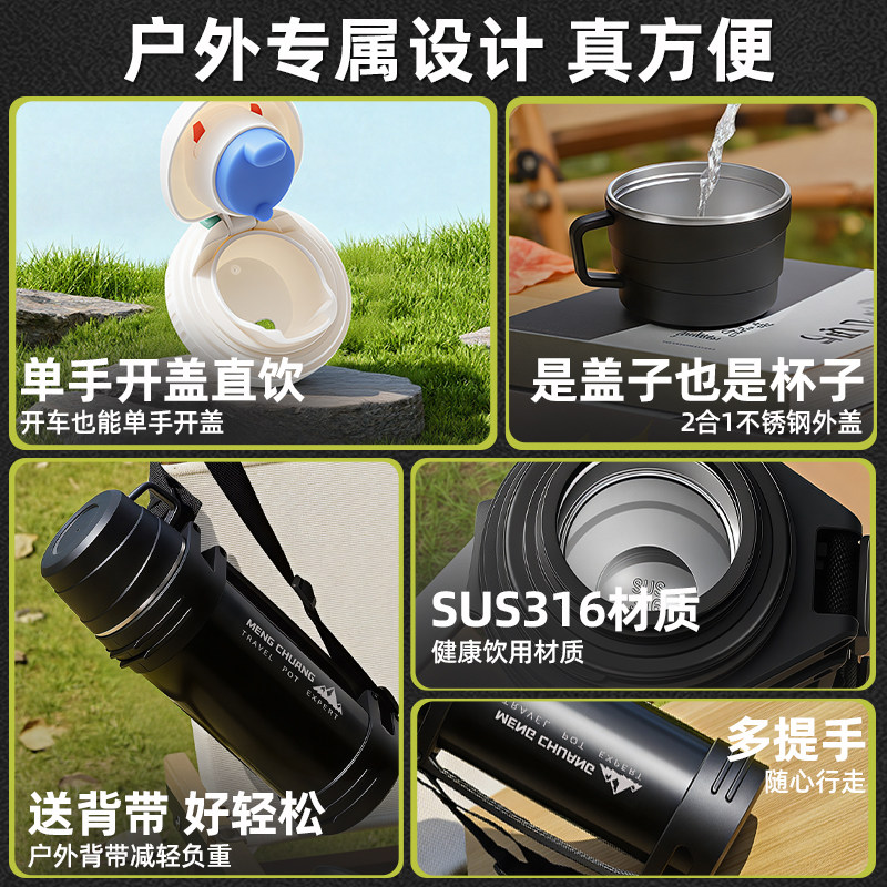 316不锈钢保温杯大容量保温保冷壶男女户外便携水壶旅行壶水杯2升