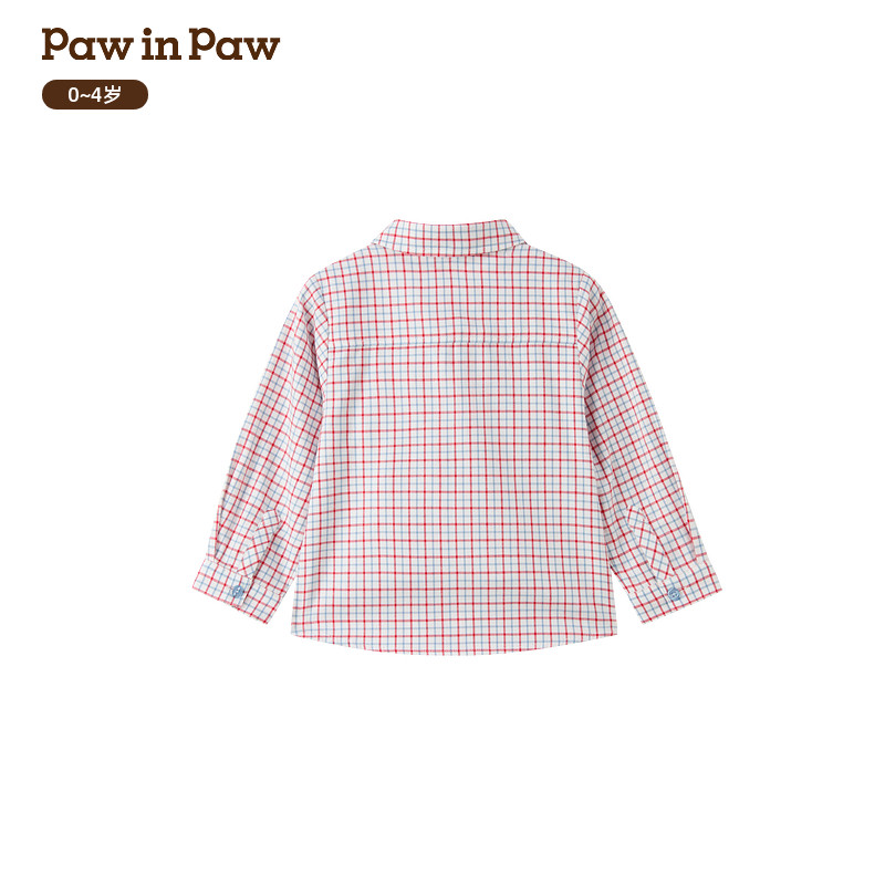 【全棉】PawinPaw卡通小熊童装26年新款男宝宝儿童格纹衬衫宽松