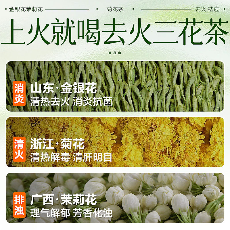 南京同仁堂金银花茉莉菊花茶去火清热解排毒内调豆祛养生茶包胎菊