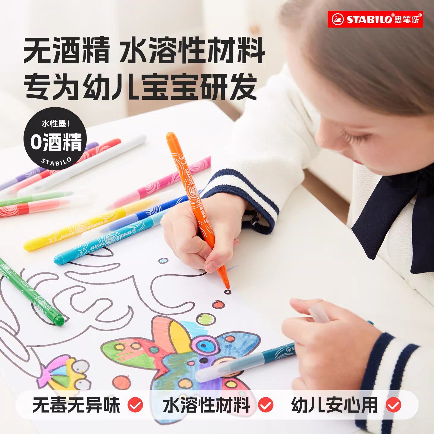 【李佳琦直播间】stabilo德国思笔乐儿童水彩笔安全无毒幼儿园宝宝软头画笔婴幼儿小学生绘画工具涂鸦水彩笔