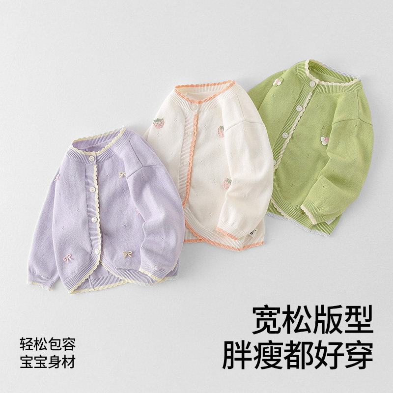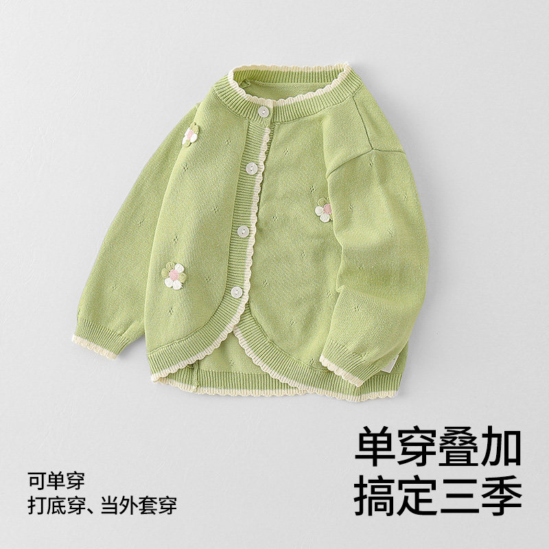 中大童开衫毛衣女洋气纯棉儿童春季针织外套男童春款新薄款打底衫