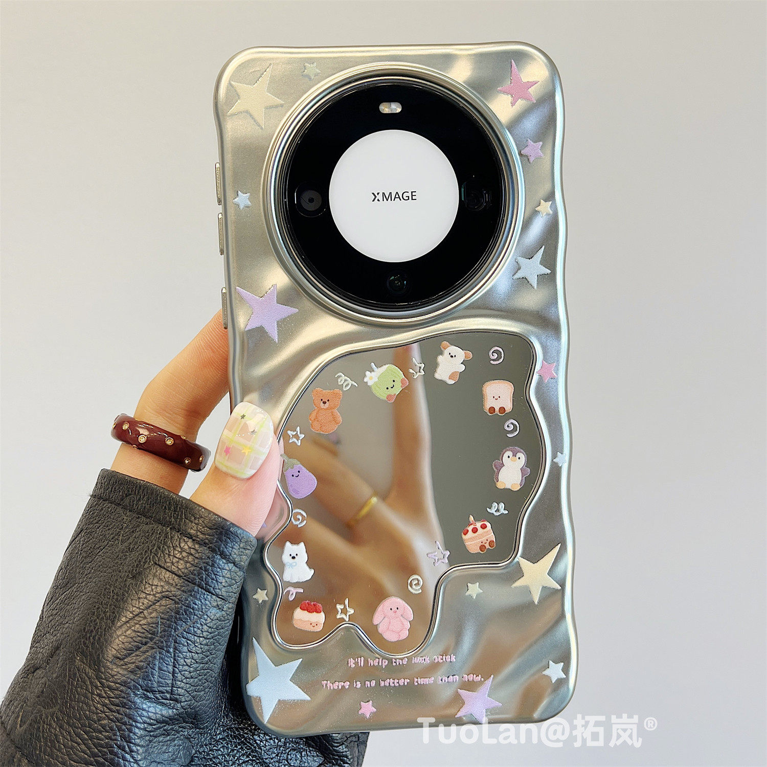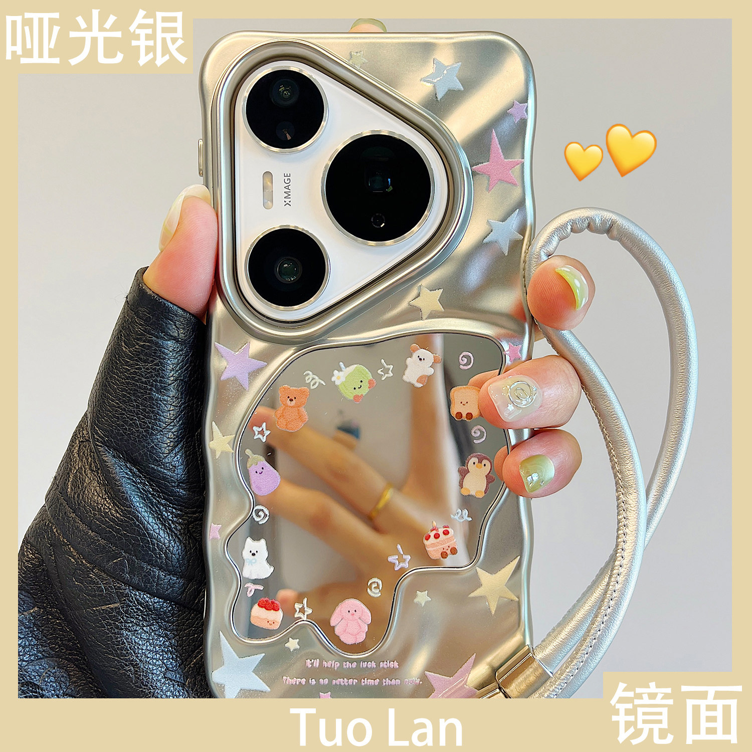 拓岚 适用华为mate60pro+新款手机壳彩色星星卡通jellycat小动物mate70/50pro波浪补妆镜pura70女80ultra挂绳
