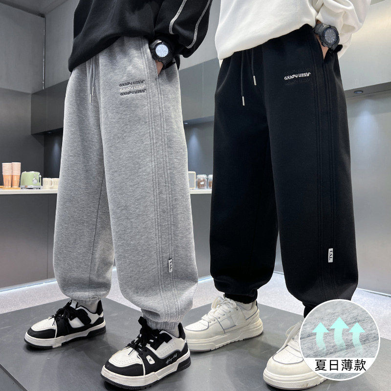 男童裤子春秋新款季加绒儿童运动卫裤冬中大童长裤黑色初中生灰色