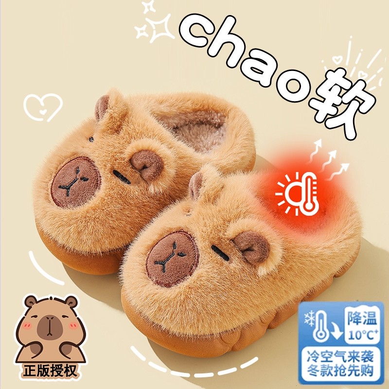 卡皮巴拉儿童棉拖鞋男童秋冬2025新款室内女童家居鞋男宝宝拖鞋冬