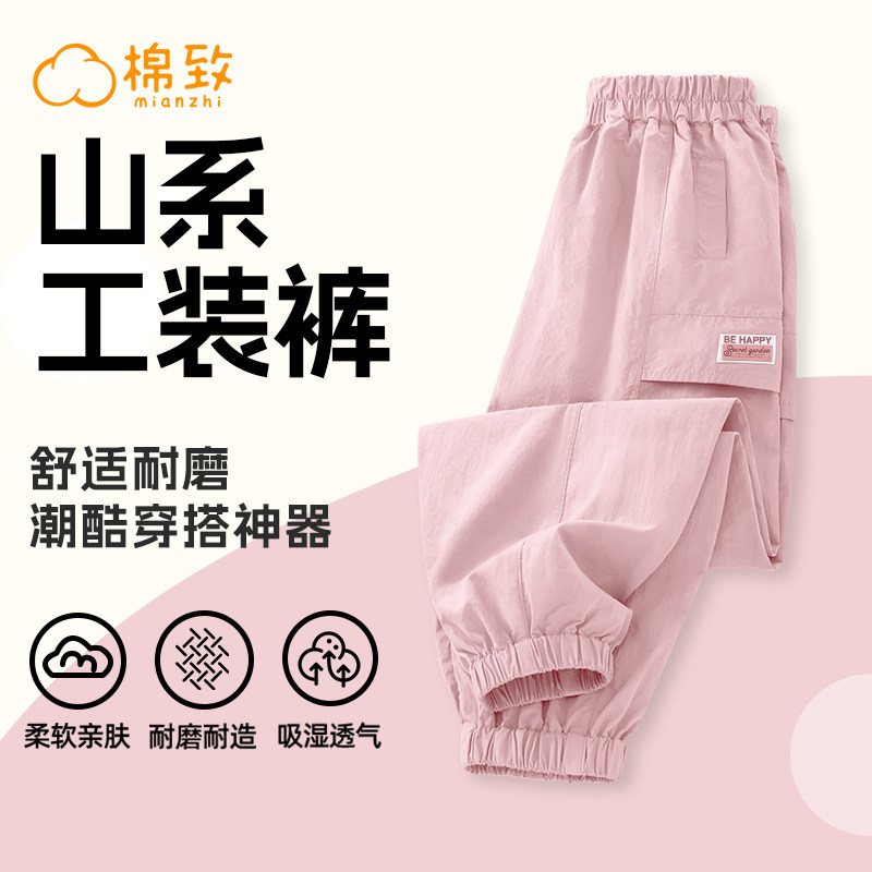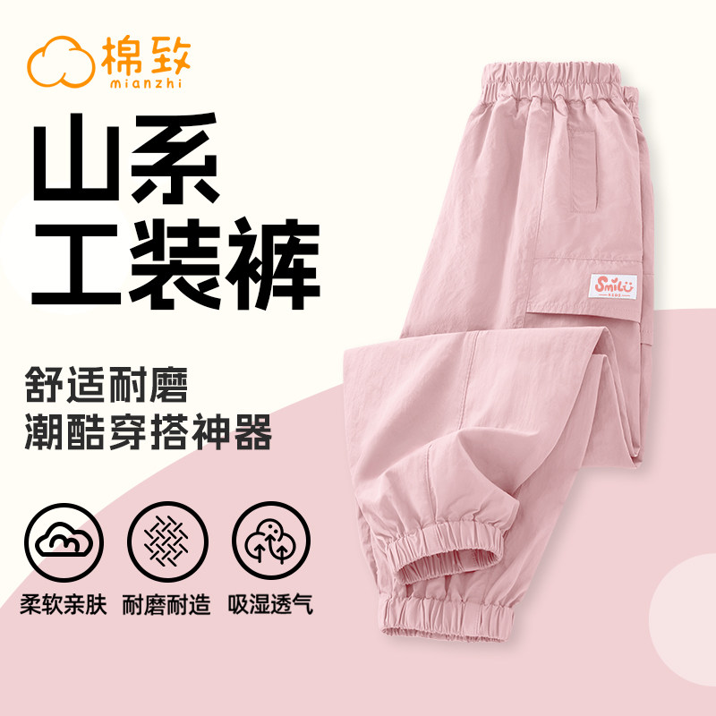 棉致女童裤子春秋款2025新款山系户外运动裤女孩休闲裤儿童工装裤