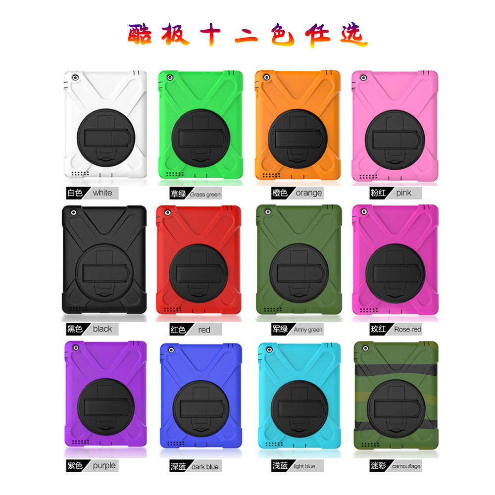 适用新款ipad10.5防摔硅胶全包mini2/3/4保护套支架11寸平板软壳air35 10代2022 pro防弯壳+手带+旋转支架9.7