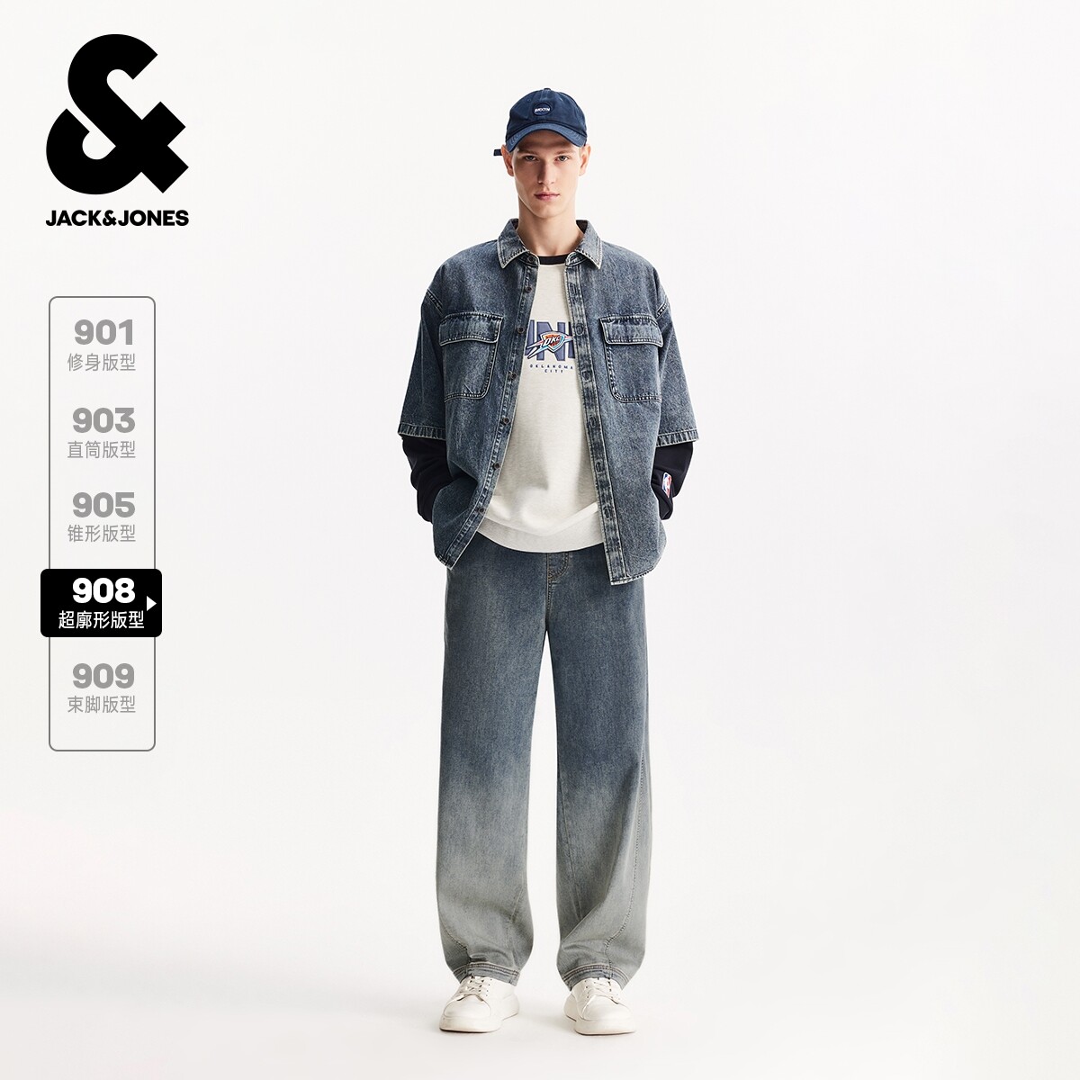杰克琼斯男装牛仔裤春秋季时尚做旧美式风宽松牛仔裤超廓形男款