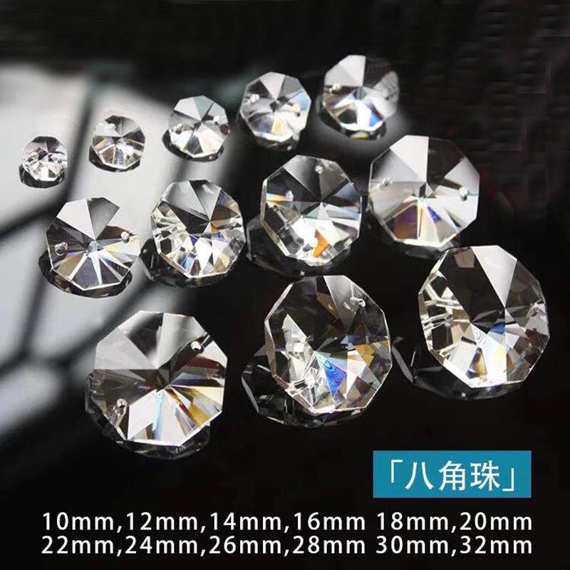 各种规格机磨水晶八角珠婚庆宴会圣诞节水晶门帘珠帘散珠水晶灯配