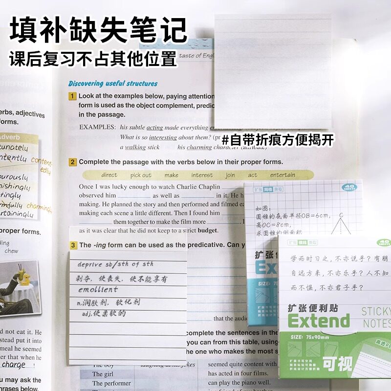 任意扩张贴便利贴不遮挡文字透明可折叠考研小学生用可撕有粘性便签贴纸初高中生记笔记贴订正错题办公便利贴