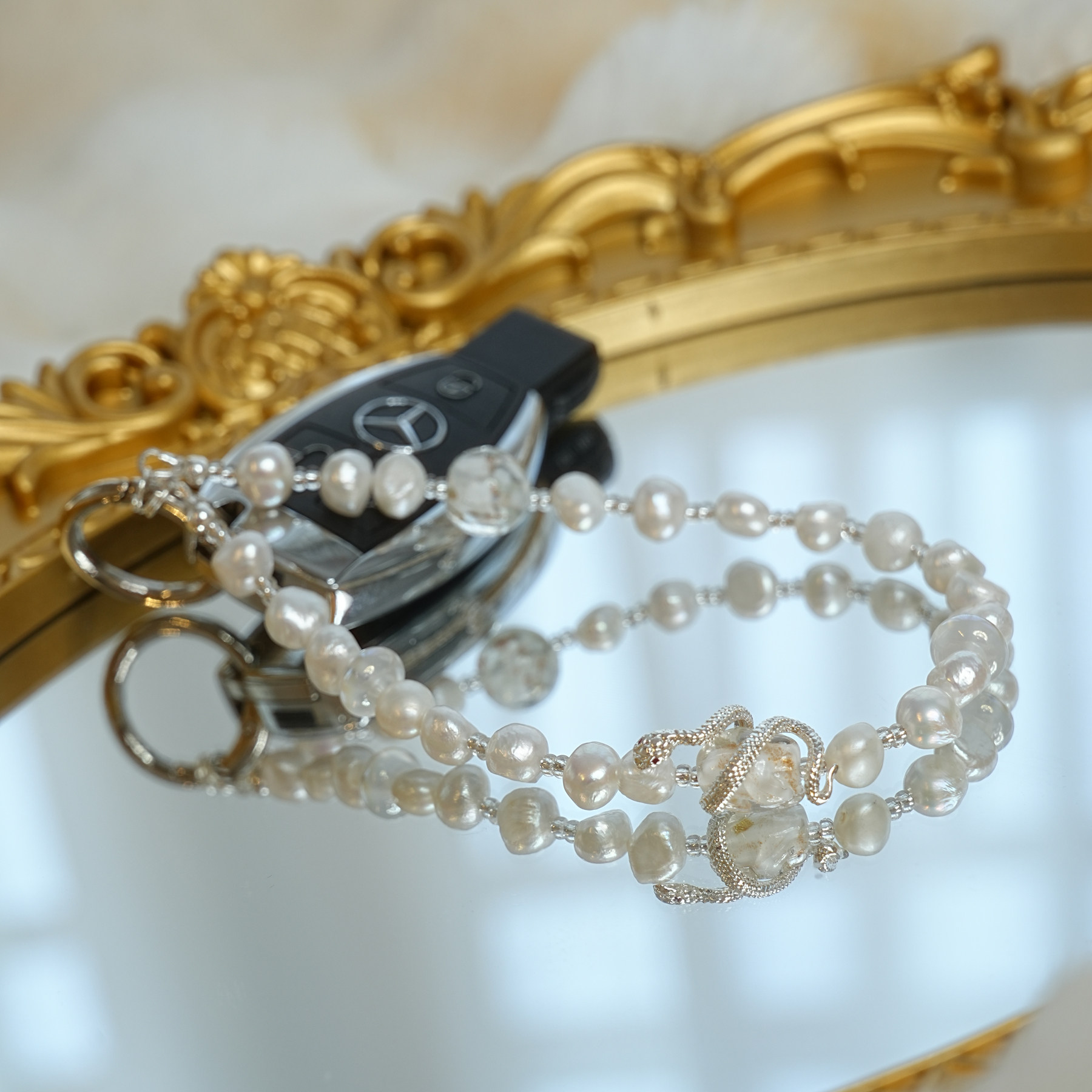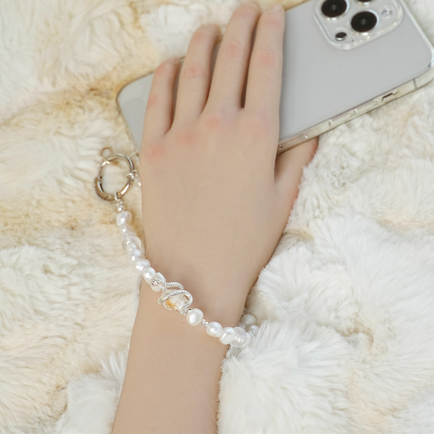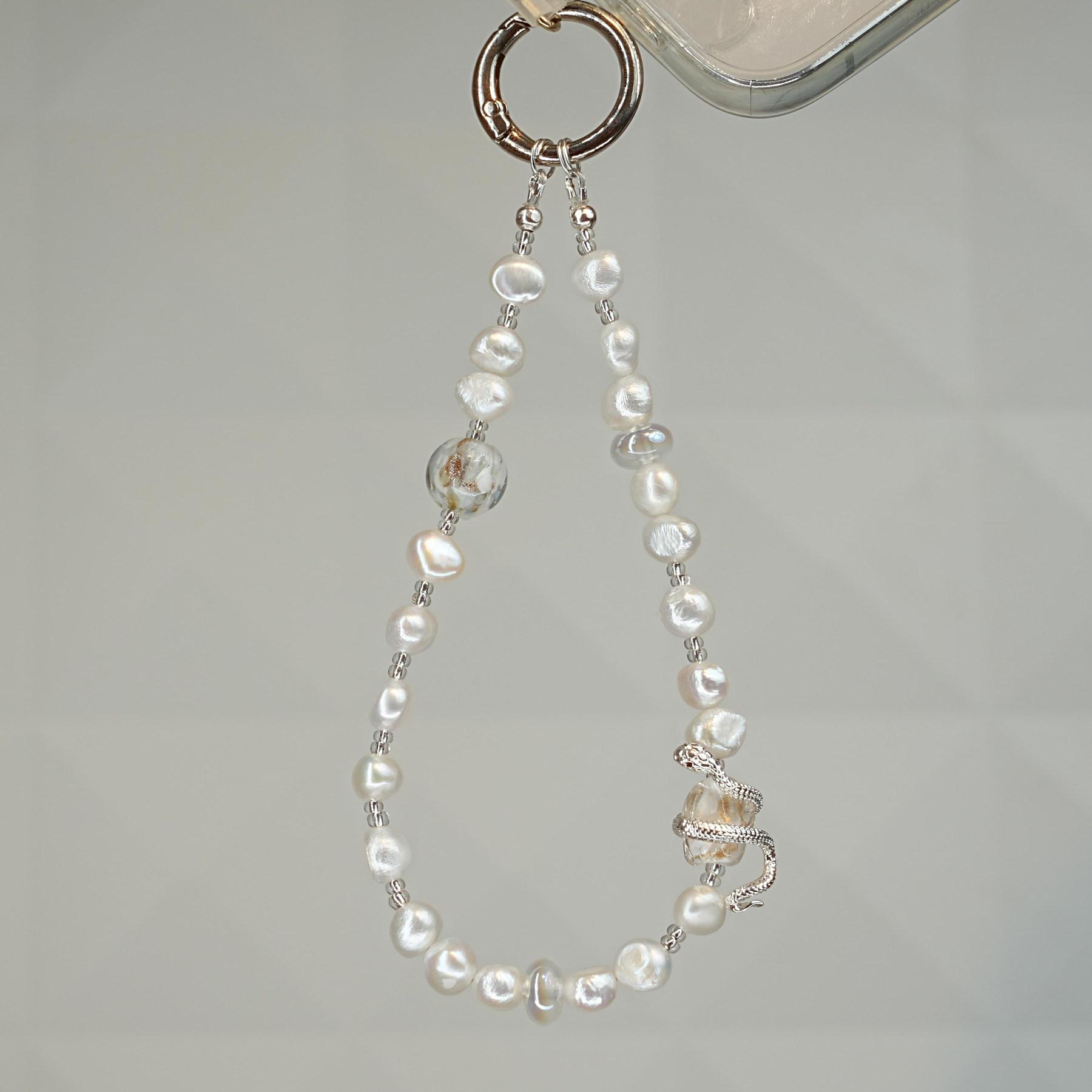 天然巴洛克珍珠手机钢绳手机链车钥匙挂件挂链高级感轻奢小众精致
