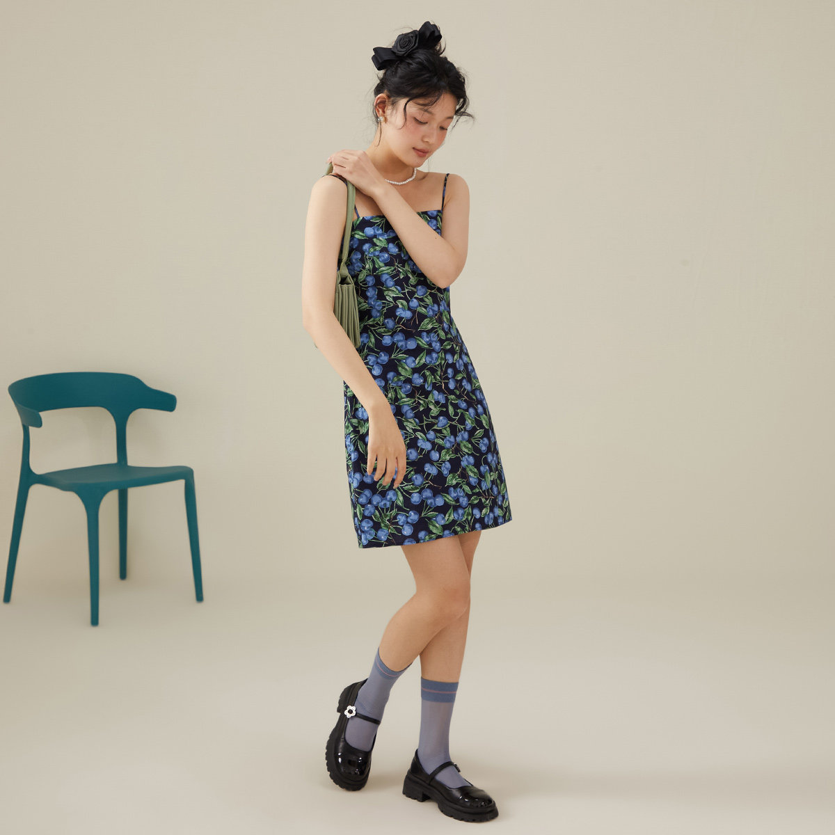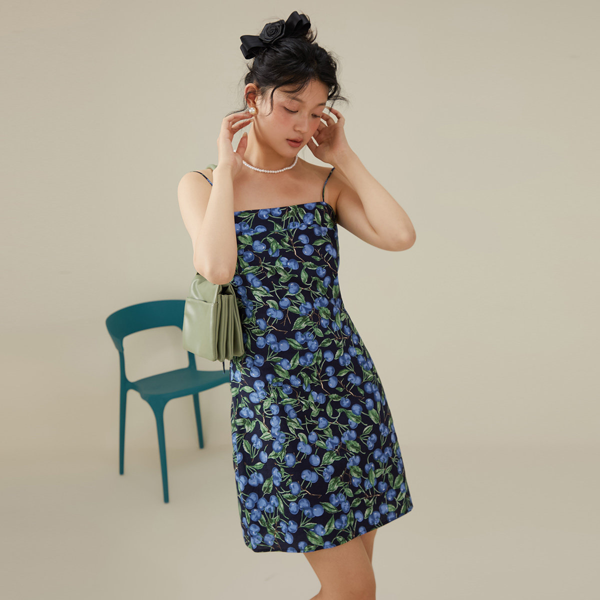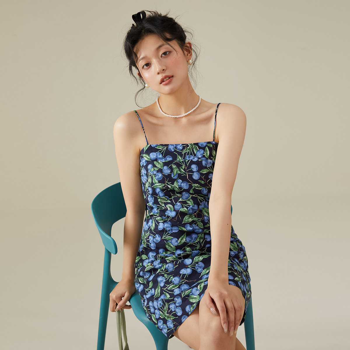 one more2025年夏季法式碎花吊带连衣裙女小个子修身包臀裙短裙