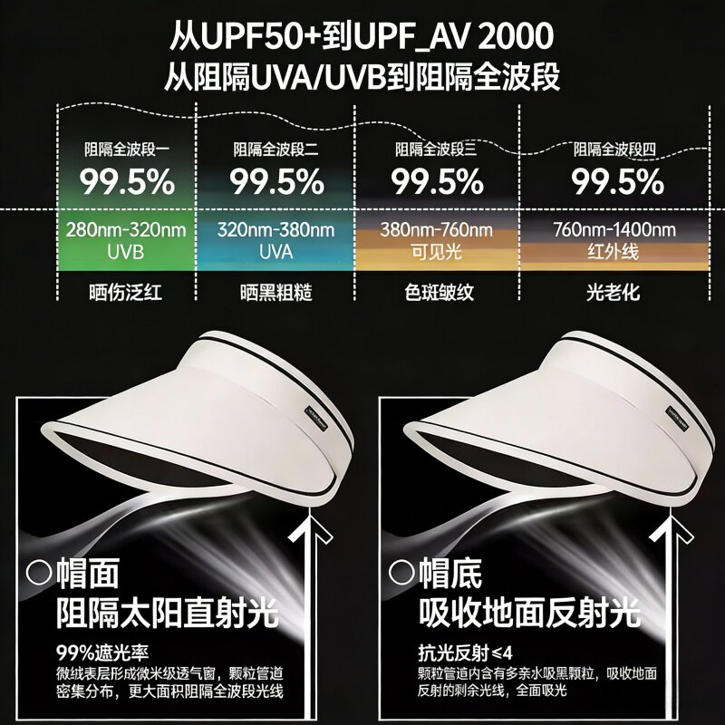 蕉下轻量蛋卷帽可折叠户外遮阳防紫外线侧脸空顶太阳帽女士防晒帽