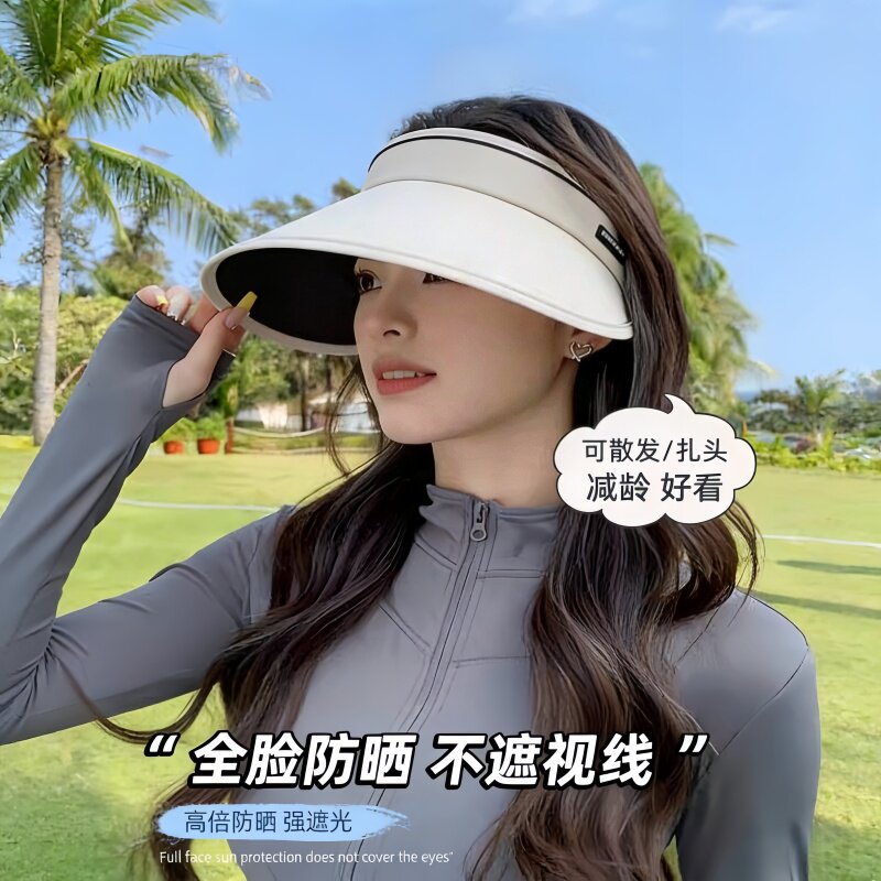 防晒帽子女士夏天防紫外线太阳帽户外遮脸大帽檐空顶遮阳帽