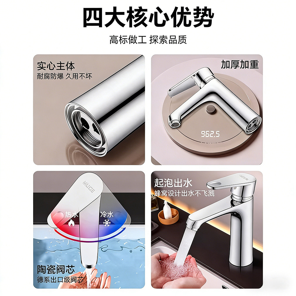 洗脸盆水龙头冷热水家用卫生间洗手池洗漱台面盆浴室柜单冷水龙头