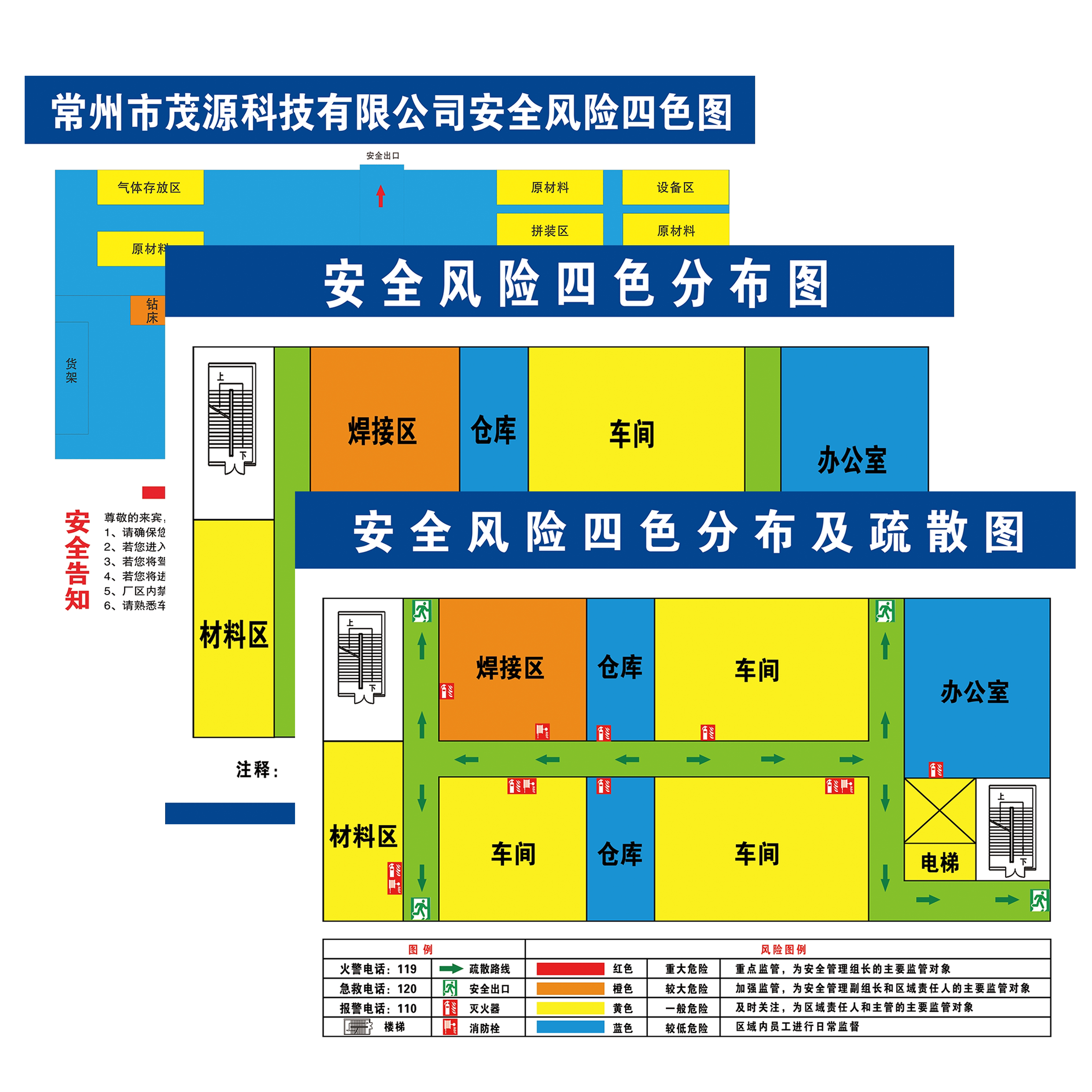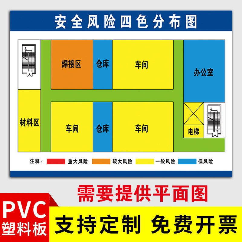 安全风险四色分布图设计定制墙贴公司企业四色风险图分布图告知牌工厂车间治理风险分级管控与逃生消防疏散图