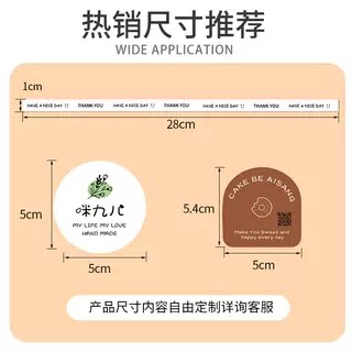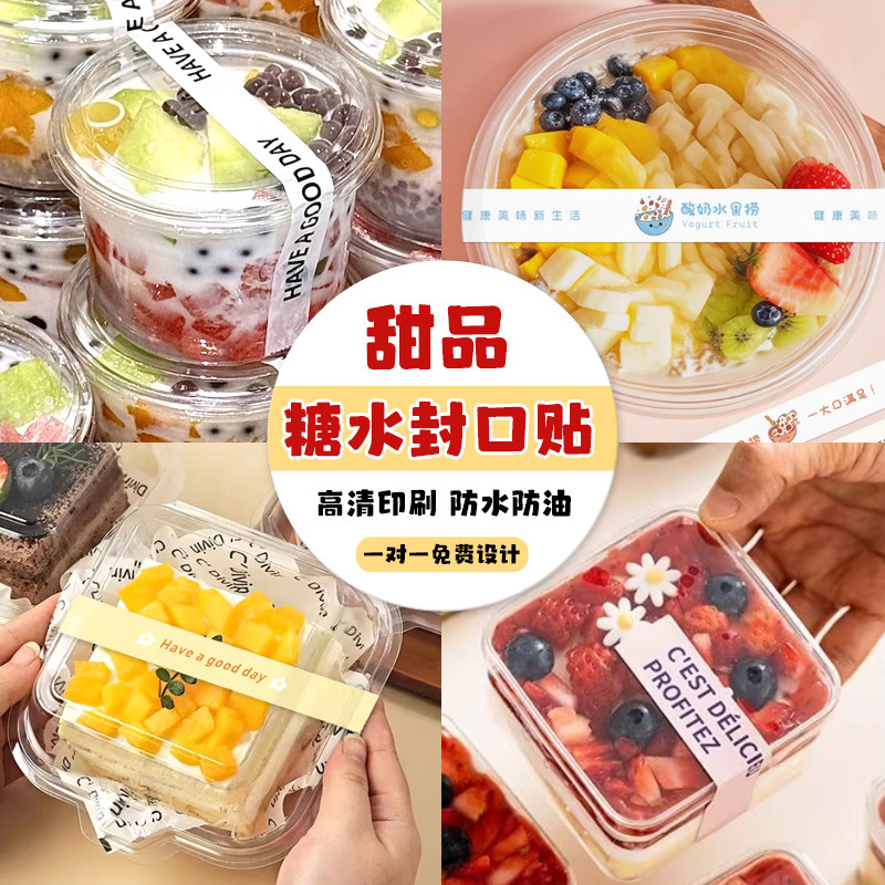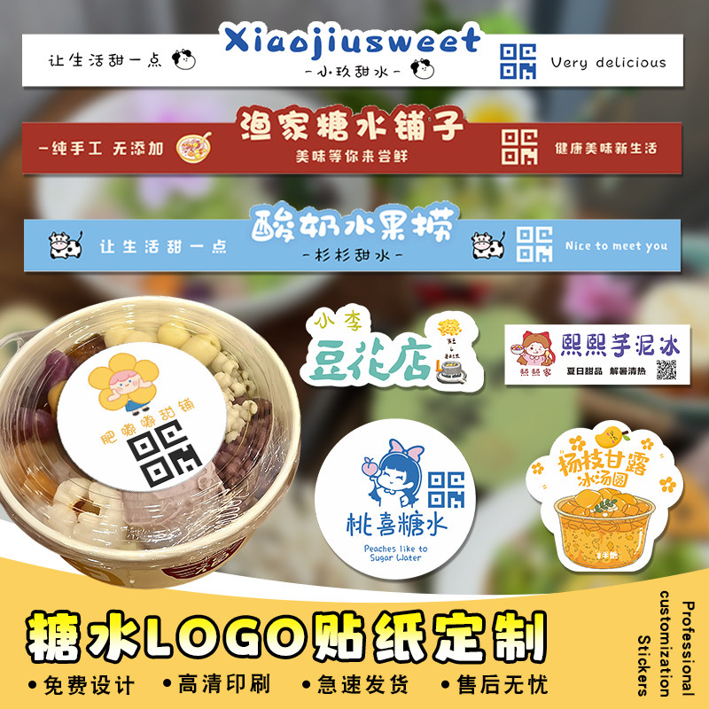 甜品贴纸定制糖水logo打包封口贴可爱图案私房手作外卖包装二维码标签长条腰封贴烧仙草酸奶碗广告杯贴不干胶