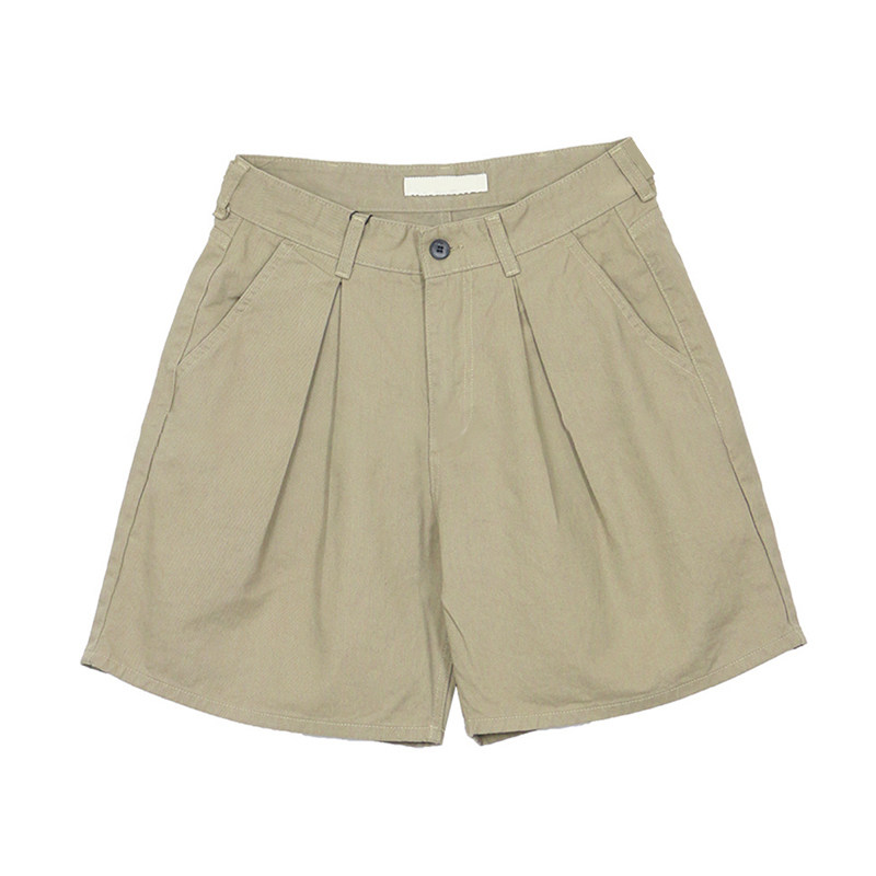 碧舍夏季新款卡其色休闲阔腿五分裤韩版潮流褶皱工装男生外穿短裤
